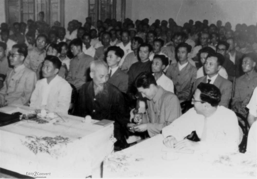 越南主席胡志明与叶守泽教授交谈(在河内)