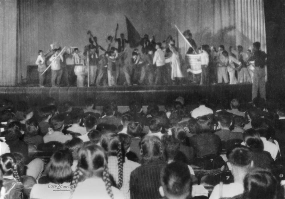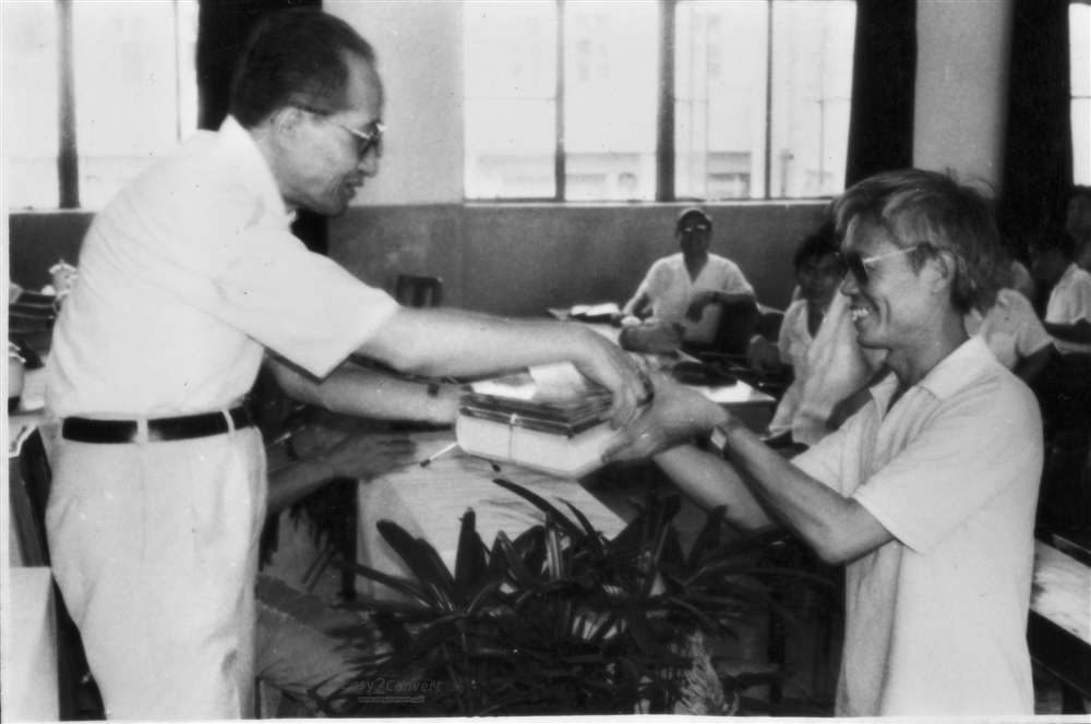 整风学习期间 越留学生向校领导赠锦旗(由越大使馆文化参赞赠)