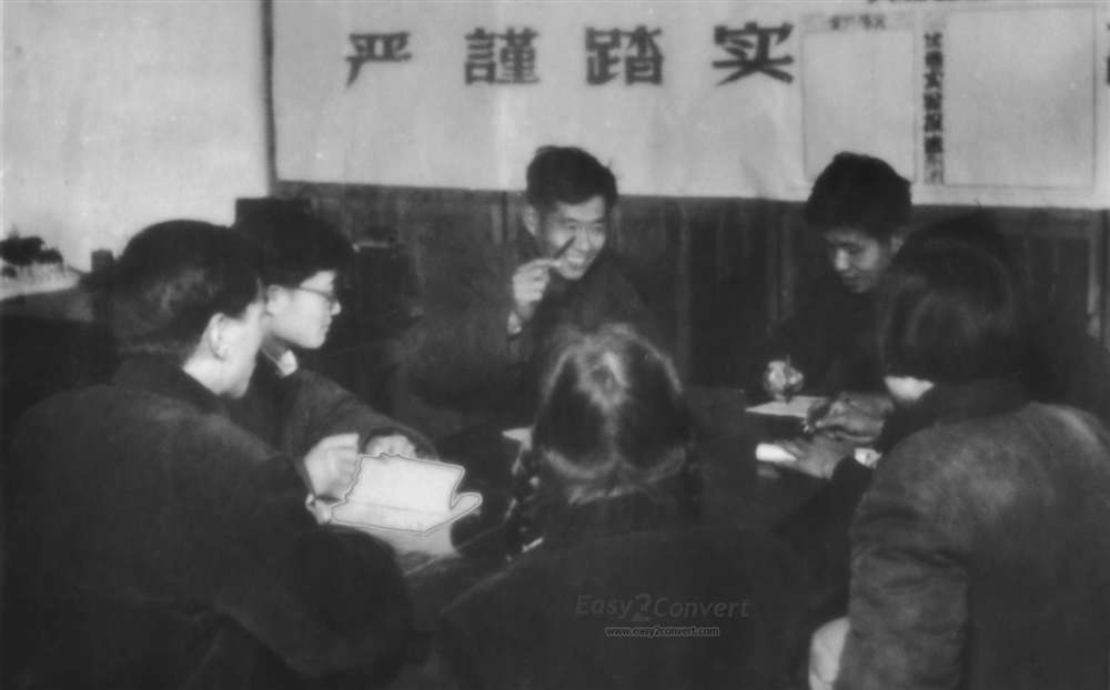 电力系党总支书记常树荫在学生中蹲点、交谈