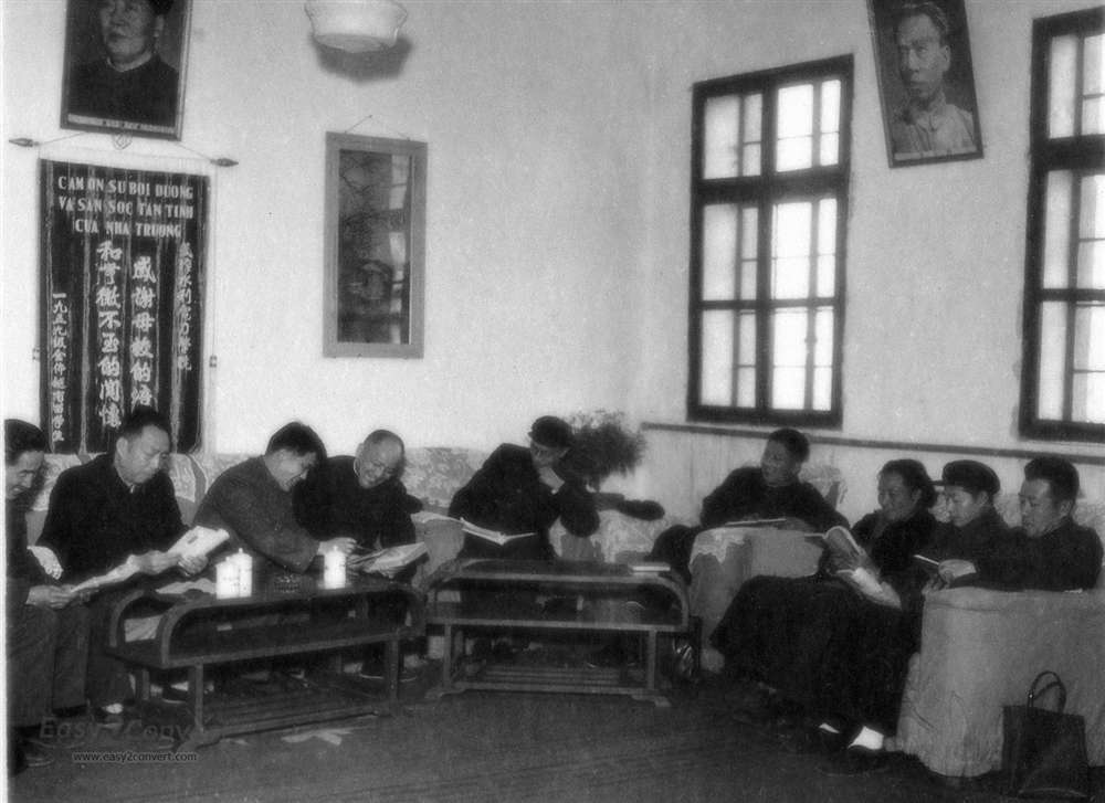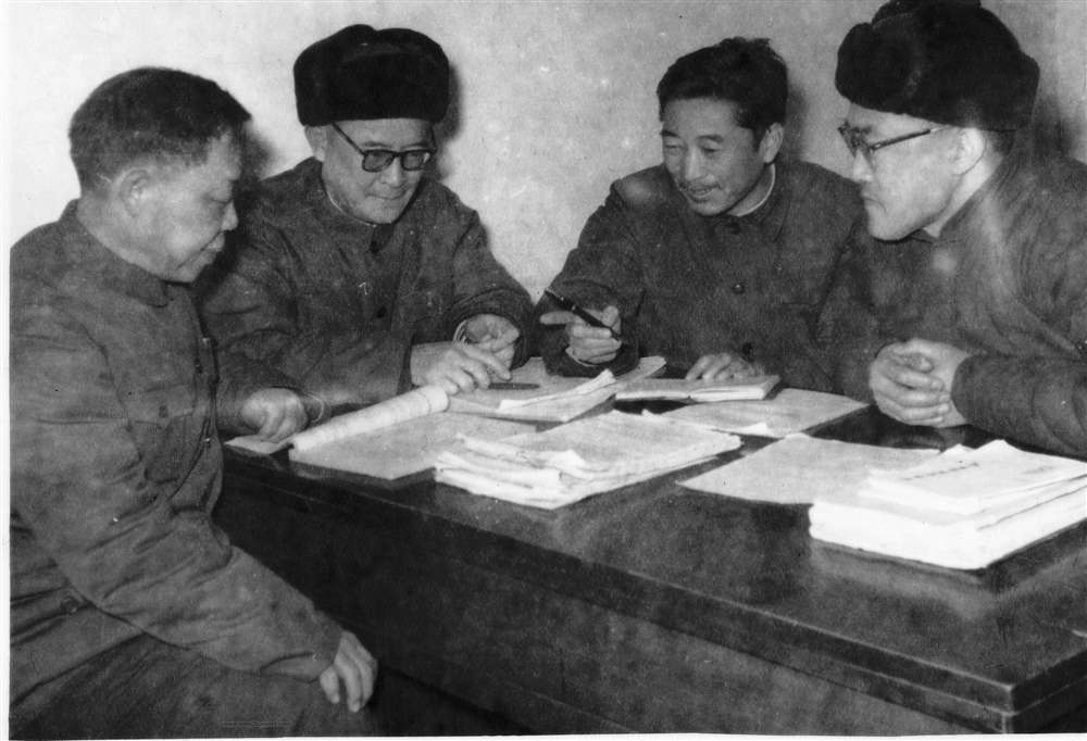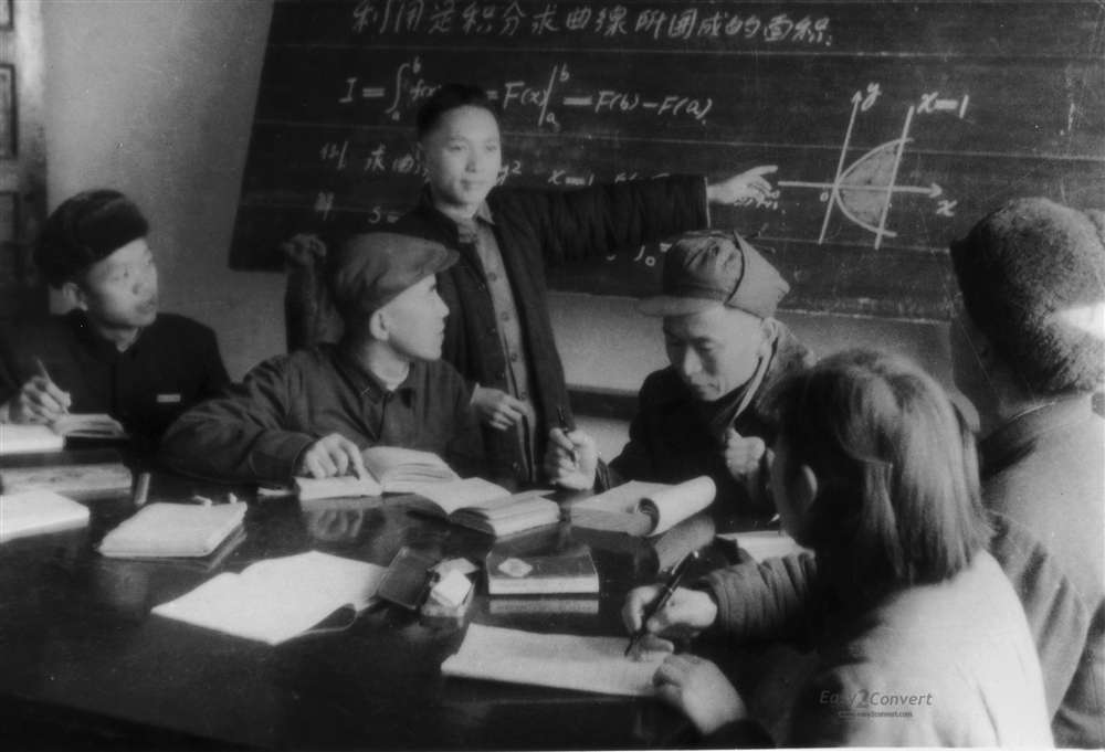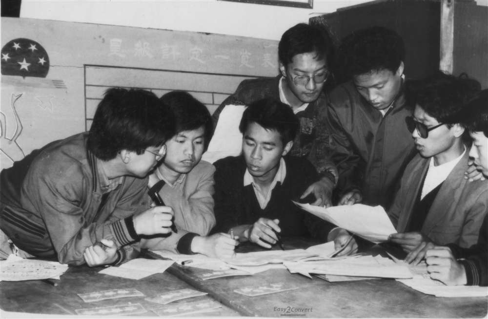 建材编写组的老们在讨论改编教材