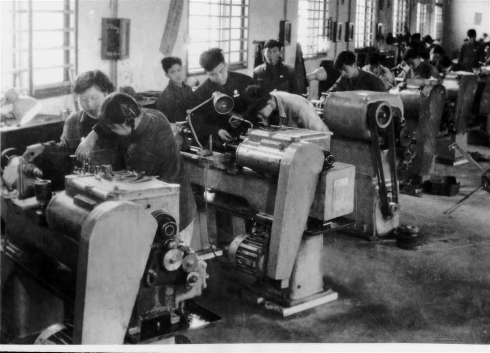 学生在机械厂进行车工实习