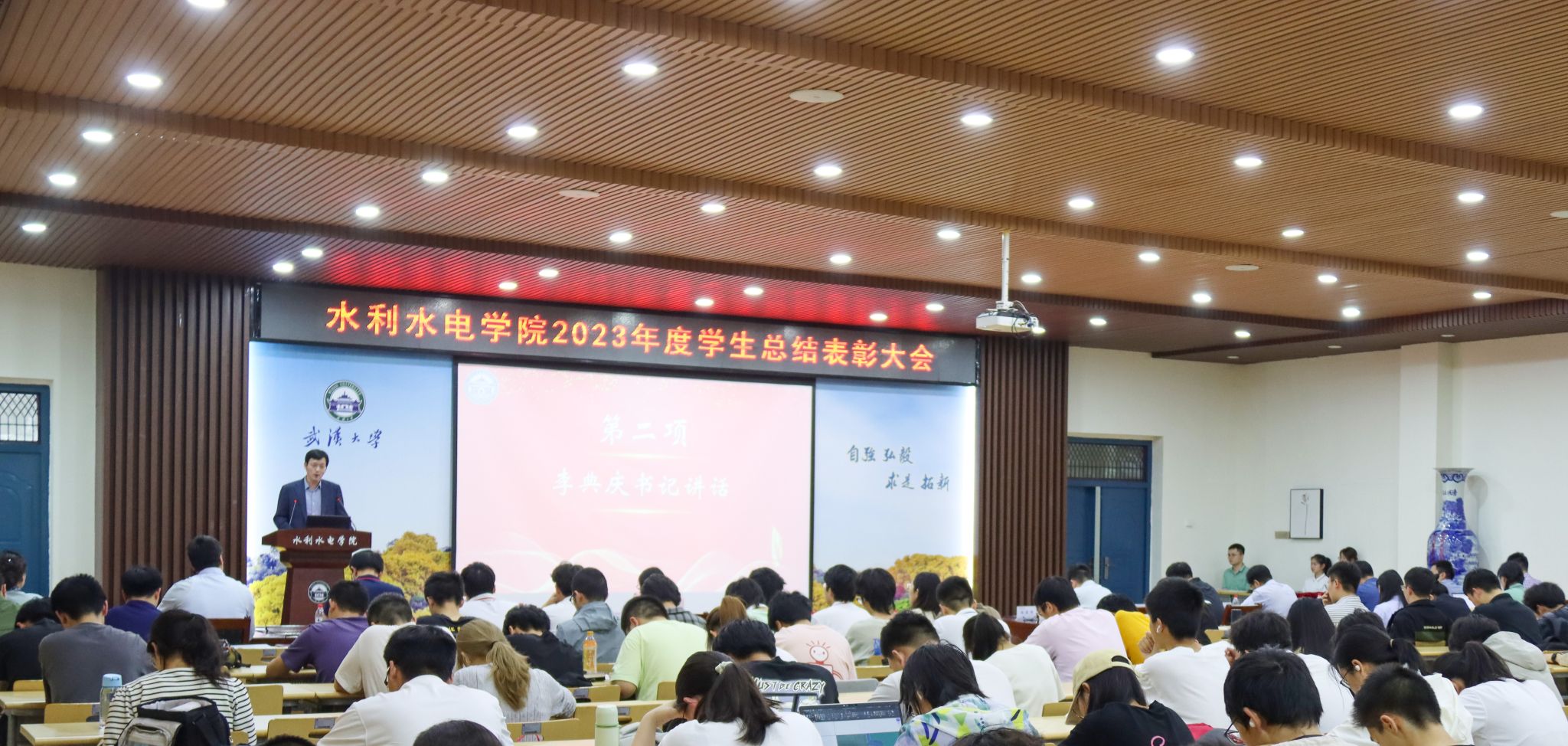 4月18日下午,学院2023年度学生总结表彰大会在8328报告厅隆重举行。学院党委书记、水资源工程与调度全国重点实验室主任李典庆,党委副书记于敏、左志香,副院长严鹏、伍靖伟、刘攀,水力发电工程系主任苏凯、水文水资源系班主任代表张权、河流工程系党支部书记李志威、水利工程系主任管光华、智慧水利系党支部书记陈华,全体辅导员、教学秘书、各年级获奖学生代表及2023级全体同学参加了本次会议。会议由于敏主持。学院2023年度学生总结表彰大会现场会上,... >>