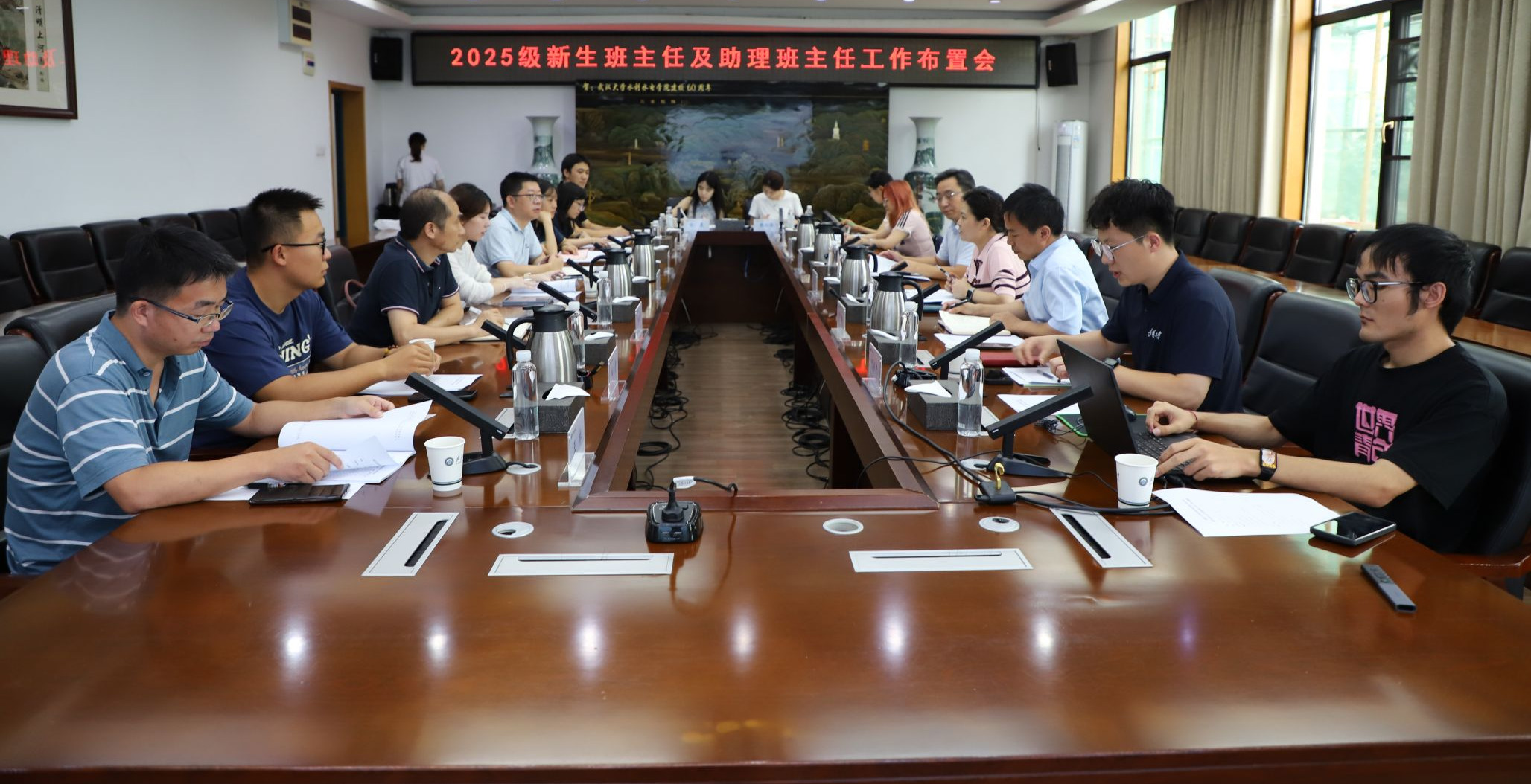 8月29日,为全面深化实施新时代立德树人工程,加快构建育人新生态新格局,提升水利人才培养质量,充分发挥教师在学生思想政治工作和发展指导中的重要作用,学院2025级新生班主任及助理班主任工作布置会在学院8213会议室召开。院党委副书记于敏,副院长(挂职)马刚,事务助理李志威,2025级新生班主任、辅导员、助理班主任参加了此次会议,会议由于敏主持。会上,于敏首先介绍了学院本科生新生分班情况和迎新工作安排,并针对新生一年级计划做了详细的介绍,... >>