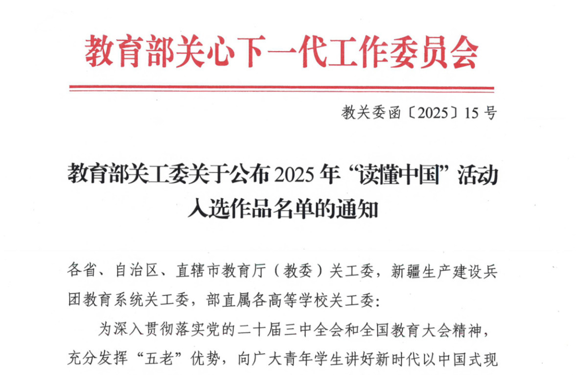 学院关工委在教育部“读懂中国”活动中荣获全国最佳征文奖