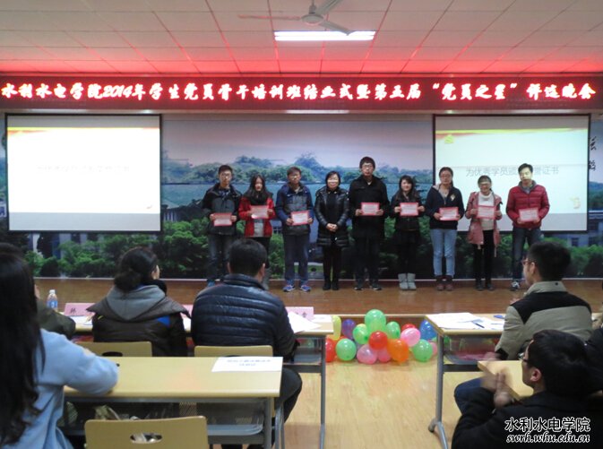 学院2014年学生党员骨干培训班结业仪式暨第五届“党员之星”评选会圆满举行 12月13日晚,学院2014年学生党员骨干培训班结业仪式暨第五届“党员之星”评选晚会在八教301报告厅顺利举行。 >>
