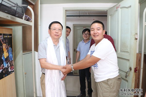 “你来自哪里”“能适应武汉的天气吗”“你是武汉人,作为东道主要照顾好寝室其他3个同学啊”“你来自辽宁本溪啊,那里有个观音阁水电站知道吗?”9月7日下午,学院院长黄介生、党委副书记张栋梁及学工办辅导员一起走... >>