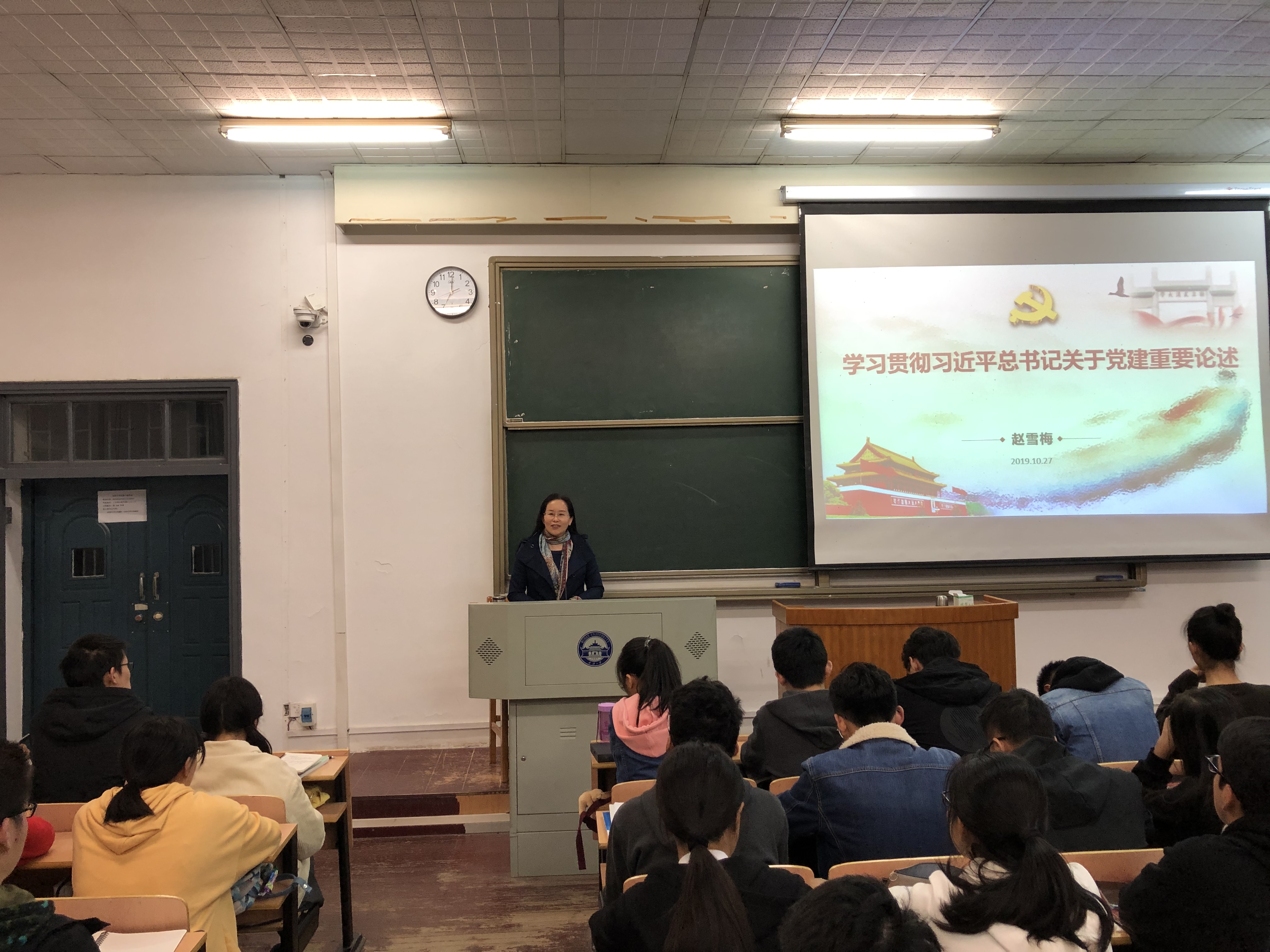2019年10月27日晚7时,51视频 第九分党校第64期入党积极分子培训班第三讲在工学部五教113教室举行,51视频 党委副书记赵雪梅教授为同学们讲授了“习近平总书记关于党建的重要论述”。 >>
