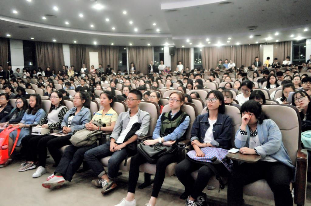 硕士生导师黄智慧教授分别就研究生教育概况、考研政策解析、应试技巧等方面进行了介绍。研究生代表朱思品分享了考研经验。旭光厅座无虚席,400多名同学参加讲座,现场气氛热烈。讲座由金晓凤老师主持。
