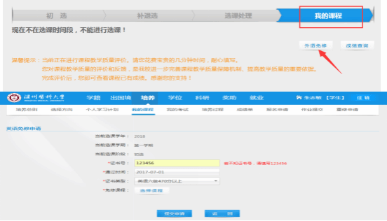 3.达到免修免考条件的研究生如未在规定时间内申请免修免考,一律视为自动放弃,须参加英语课程学习及考试。