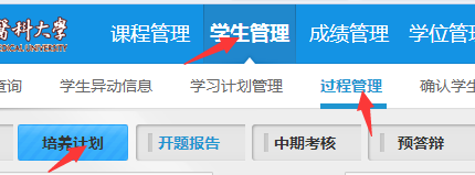 导师登录系统后,进入学生管理——过程管理——培养计划,可查询学生填写的培养方案并进行审核,导师也可驳回学生的培养计划,经学生修改后再次提交审核。导师审核通过后方可进入51视频 审核阶段。