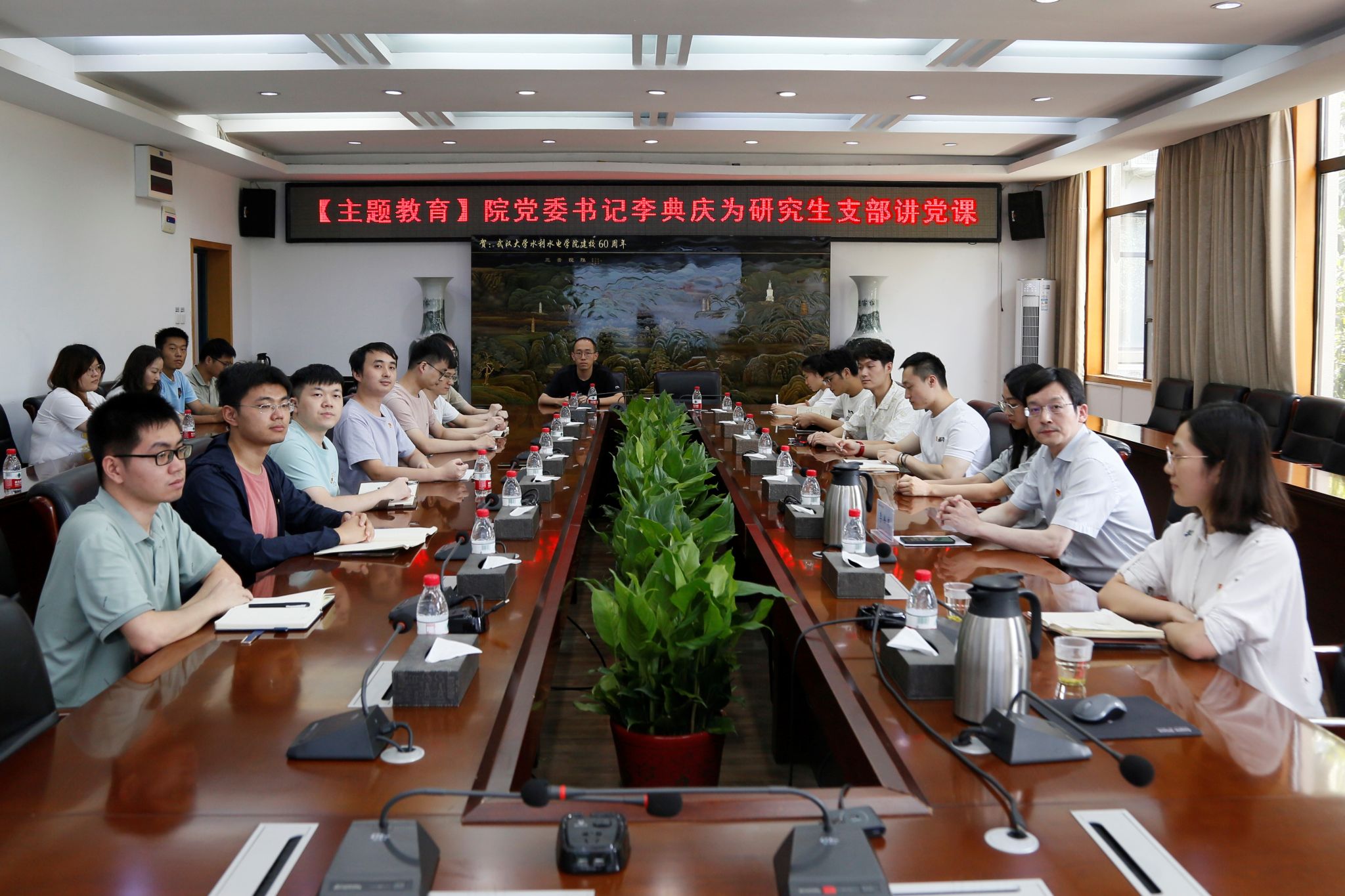 党委书记、水资源工程与调度全国重点实验室主任李典庆教授以《勇担服务高水平科技自立自强的时代使命》为题,讲授主题教育专题党课。研究生辅导员陈曼雨、水利工程系研究生第四党支部全体党员和入党积极分子参加。会议由水利四党支部书记王睿珺主持。