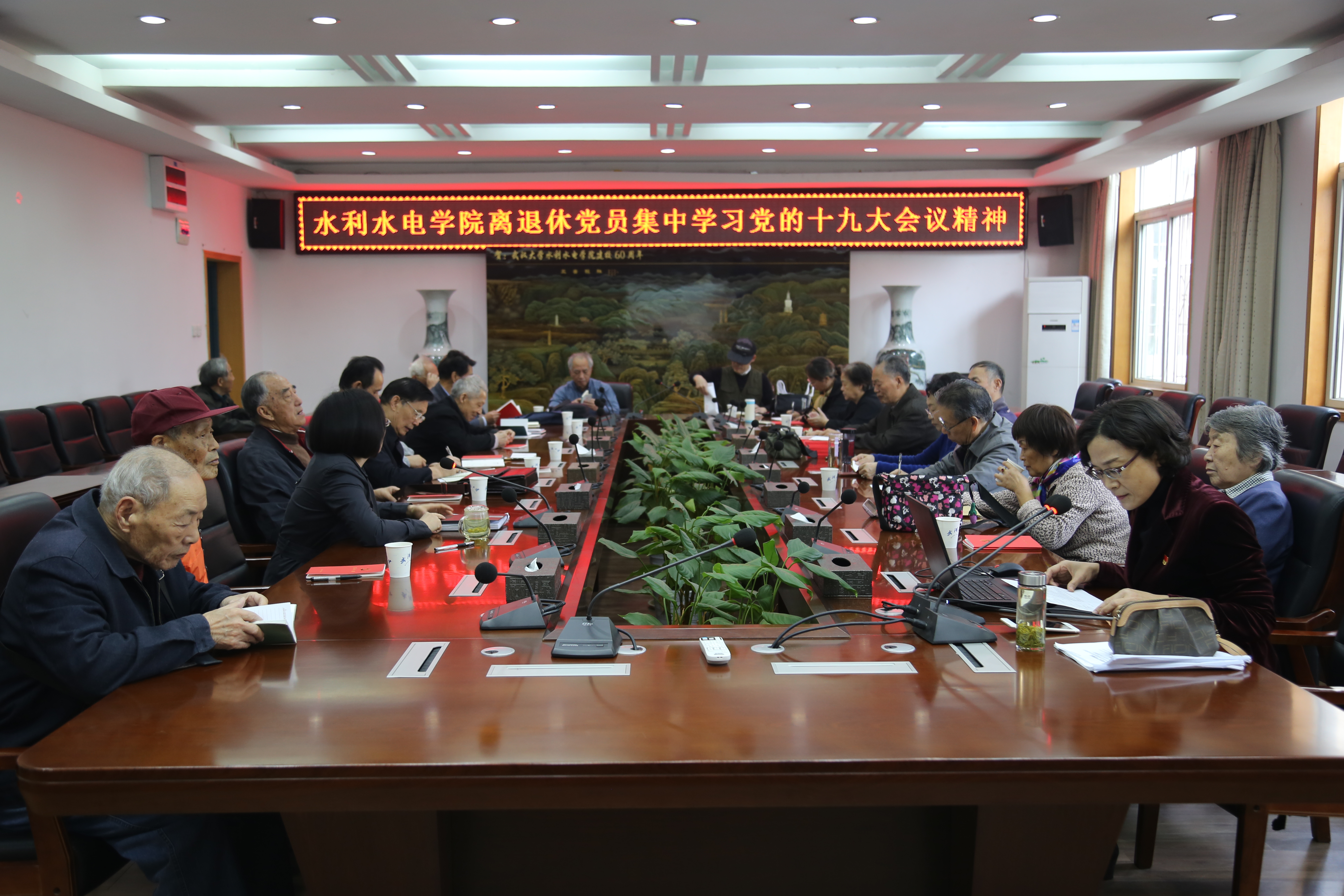 离退休党员集中学习了党的十九大精神,会议由学院党委副书记周玉霞主持,党委书记程连珍做了专题报告,学院各离退休支部书记、支委党员代表共二十余人参加了学习。