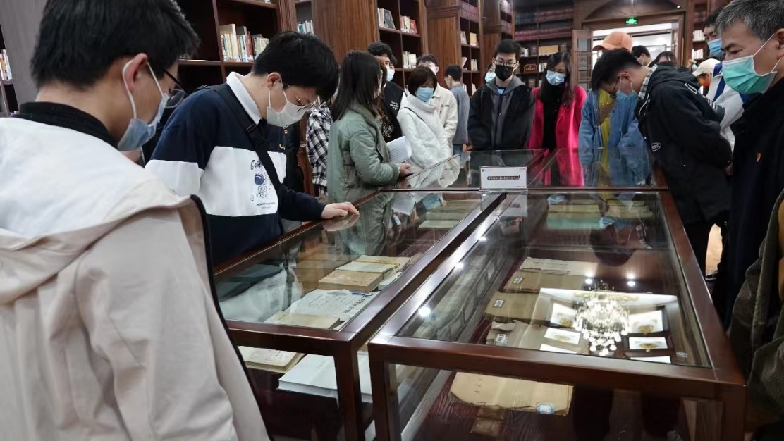 会议开始前,殷心盼同志带领大家参观了文库,详细介绍了珞珈文库的历史沿革、整体布局与展区规划,细致讲解了每个展区展示的文学作品及其历史底蕴和背后闪光的故事。