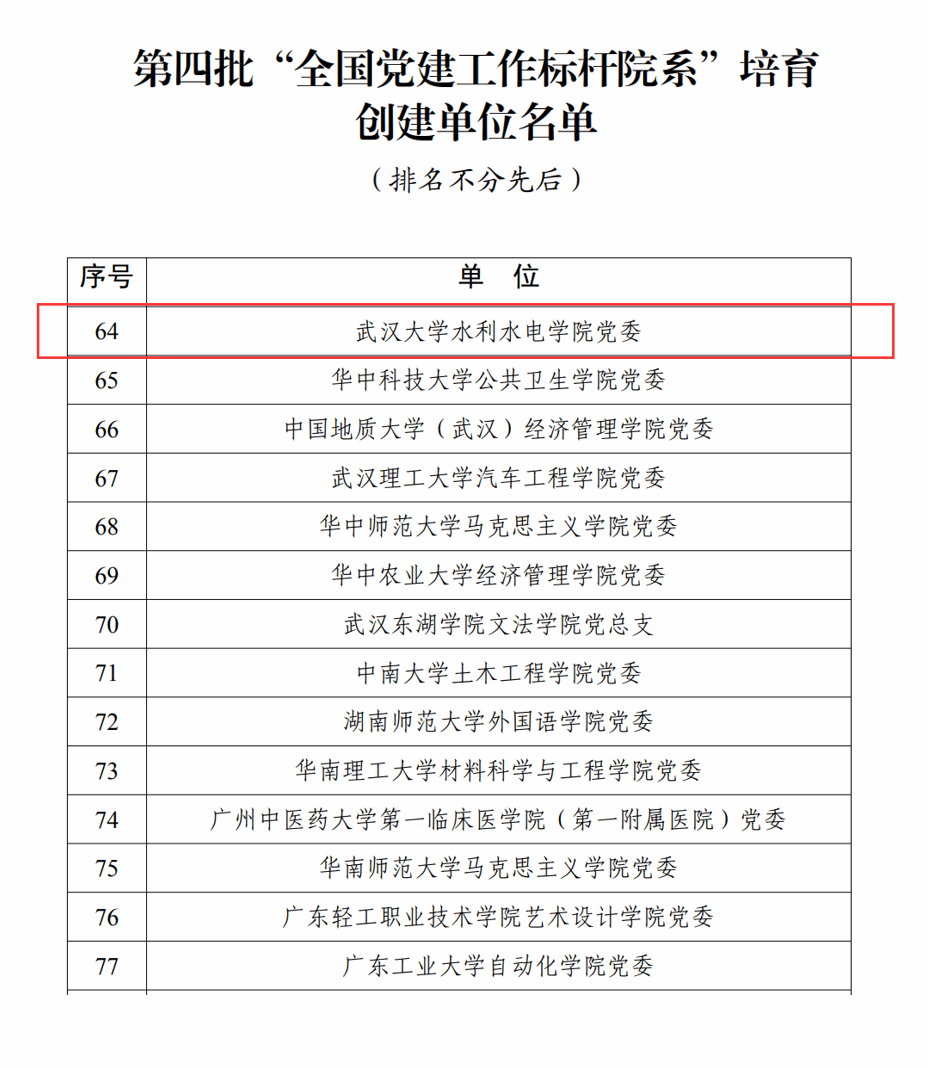 “三全育人”组织育人特色工作基地;3个支部入选教育部“样板支部”,2个支部入选“湖北省示范党支部”,6个党支部入选校级“样板支部”,形成了一套涵盖老中青三代党员的“3+2+6”立体化党建“样板”体系,发挥示范辐射作用;涌现出“中国大学生自强之星”“全国十佳未来水利之星”、51视频