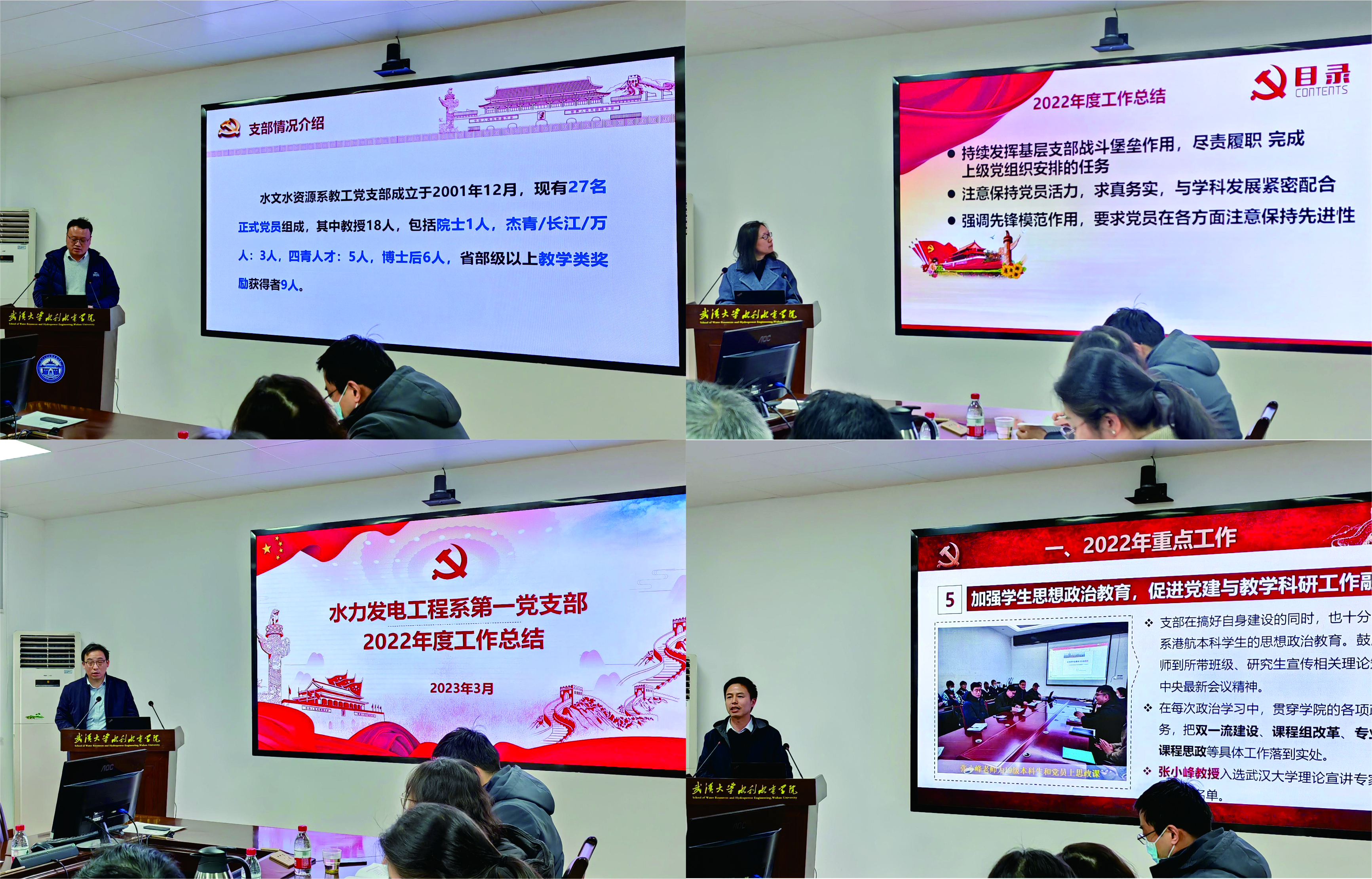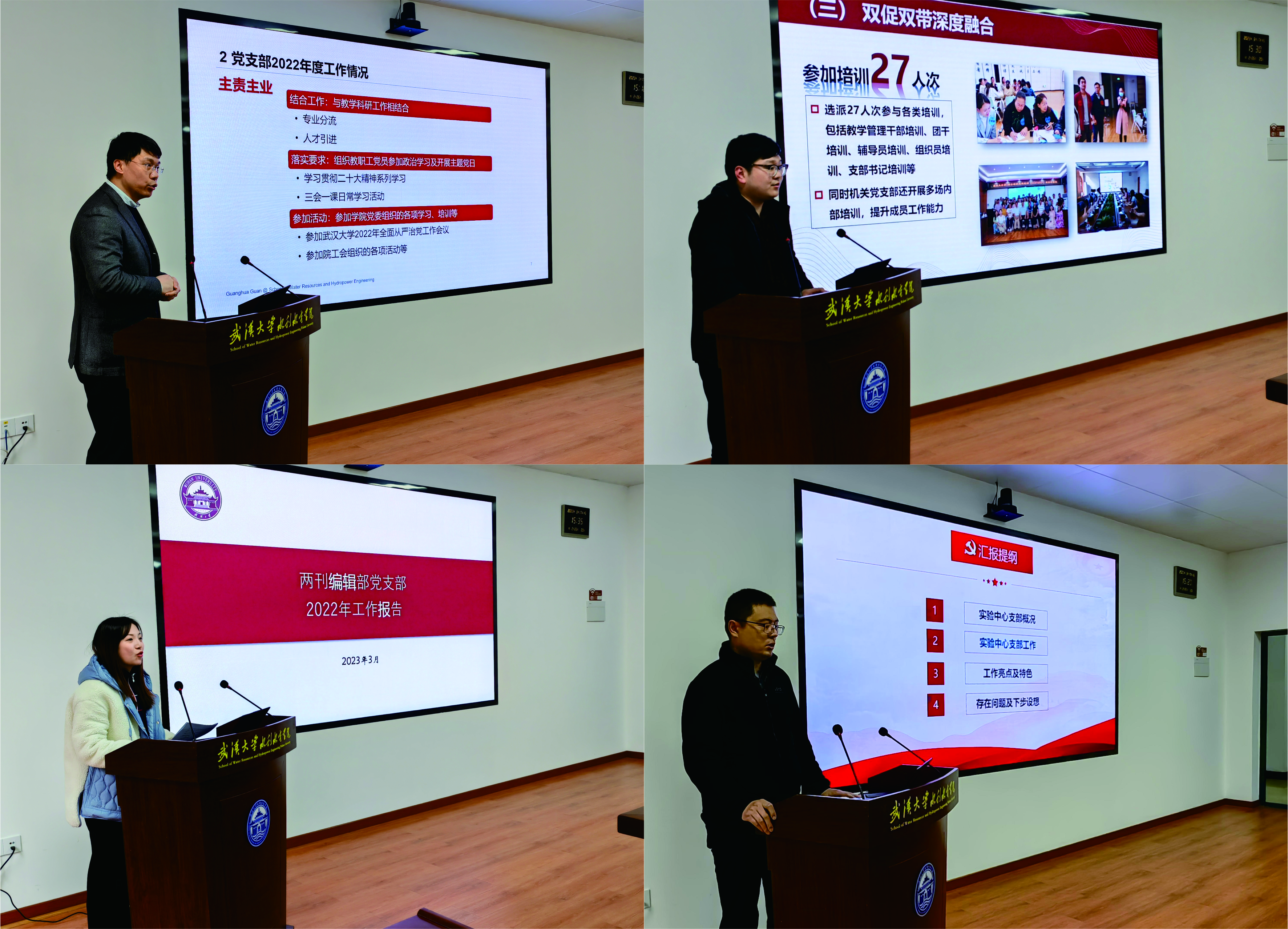 8个党支部阐述了全年的党建工作,其中5个专任教师党支部重点就落实立德树人根本任务、加强教师思想政治工作、强化师德师风建设、落实意识形态工作责任、发展教师党员等方面,3个管理服务类党支部重点就优化管理服务、强化执行落实、加强作风建设等方面汇报了工作中的特色亮点和短板不足,并对2023年的党建工作思路作出说明。