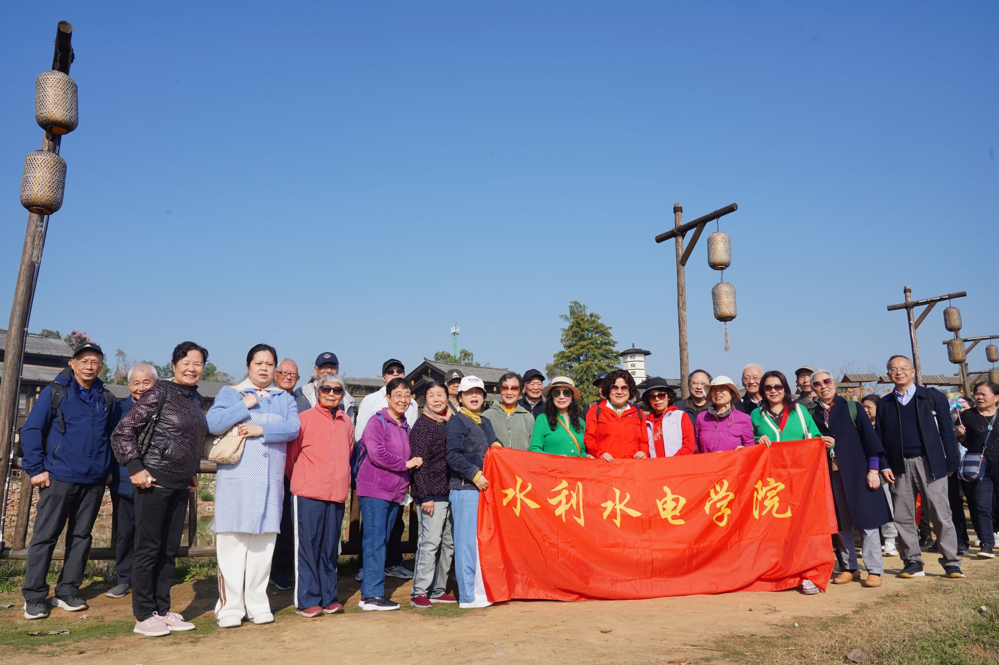 水文水资源系、河流系30余位退休教师在学院老年协会与离退休党支部的组织下,前往江夏里开展秋游活动。深秋的江夏里,石桥流水与田园风光相映成趣,老同志们漫步于樱花桥,驻足于老码头广场,体验了一场融合传统与现代的文化之旅。江夏里作为集文化、休闲、商业于一体的仿古建筑群落,不仅复刻了传统建筑美学,也为市民保留了一份宁静的精神家园。