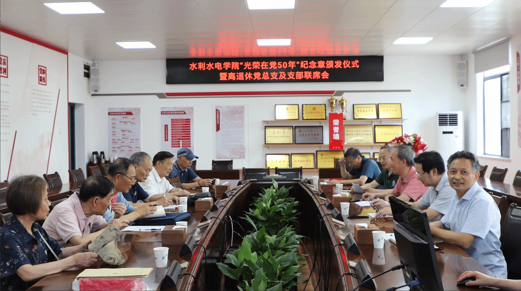 7月2日下午,学院举办“光荣在党50年”纪念章颁发仪式暨离退休党总支、老协和支部联席会。学院党委委员、副院长(主持工作)刘攀,离退休党总支委员,老协和关工委负责人,各离退休支部书记及委员参加会议。会议由离退休党总支组织委员梅亚东主持。