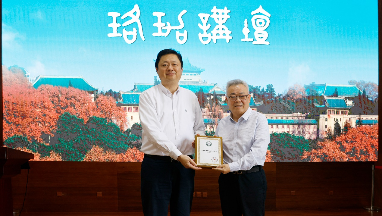 珞珈讲坛第486讲。学校副校长龚威出席论坛,并为邓铭江颁发珞珈讲坛纪念牌。讲坛由学院副院长(主持工作)刘攀主持。