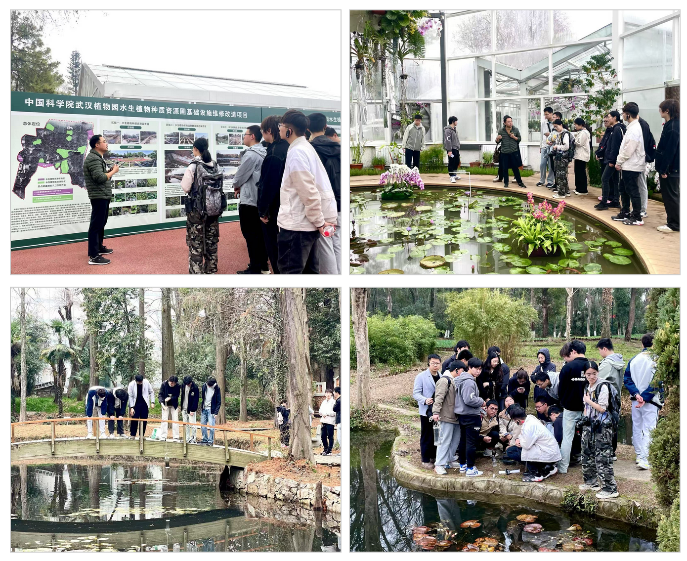为深入贯彻“理论联系实际”的教学理念,着力提升学生对《水生态学》课程知识的理解与应用能力,《水生态学》课程组组织学生前往中国科学院武汉植物园、中国科学院水生生物研究所、水利部中国科学院水工程生态研究所以及武汉市硚口区张毕湖生态修复工程现场等地开展实地参观与现场教学活动,为专业知识的学习注入了鲜活的实践内涵。