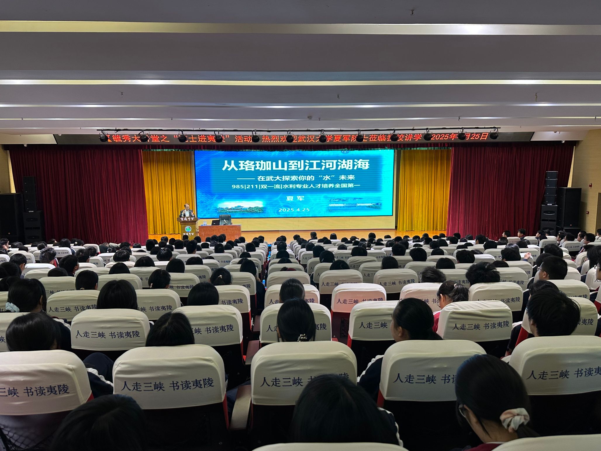 夏军院士前往夷陵中学开展科普讲座,引发师生的热烈反响。学院副院长(主持工作)刘攀、党委副书记于敏、事务助理李志威、团委书记邓力源、辅导员慈晓虎一同前往。