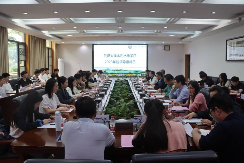 在8213会议室举办2022-2023学年院领导接待日活动。院党委书记李典庆、院长熊立华、党委副书记于敏、副院长严鹏、伍靖伟、夏军强,各办公室主任、副主任,全体辅导员以及20名本科生、研究生代表参加本次接待日活动。