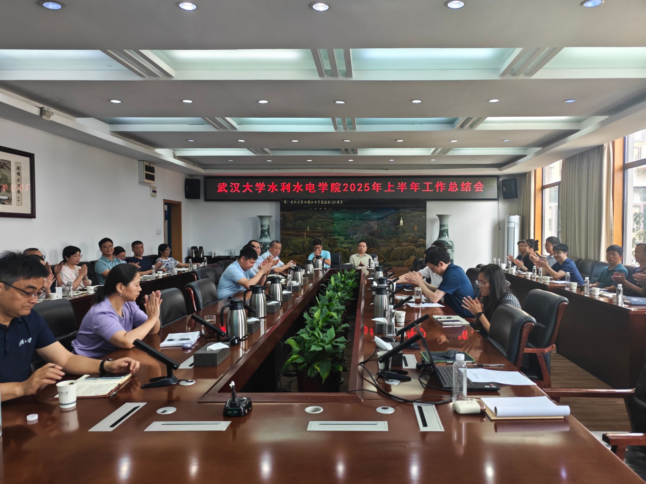 院党委书记、全国重点实验室主任李典庆作总结讲话,他充分肯定了学院上下团结一心,在本年度上半年各项工作中取得的优异成绩,指出在新工科转型升级的背景下,围绕学校“两步走”战略,对标建设世界一流水利学院的标准,学院在拔尖人才培养和高水平科学研究等方面还面临巨大的挑战。希望全体领导干部要以本次深入贯彻中央八项规定精神学习教育为契机,营造风清气正的工作氛围,持续改进工作作风,以时不我待的紧迫感和责任感狠抓工作落实,凝心聚力推动学院事业发展再上新台阶。