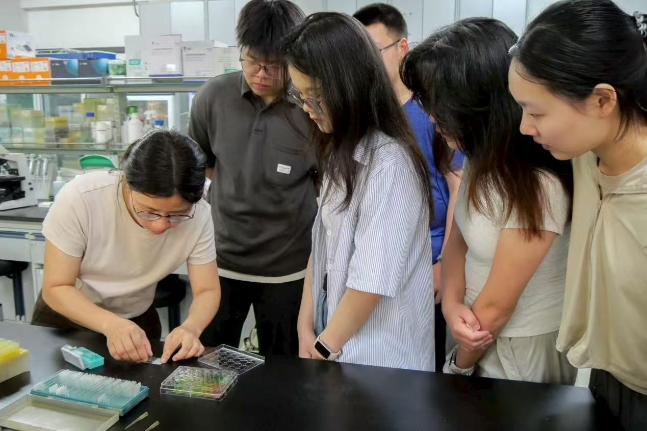 7月13日,实践队前往中国科学院水生生物研究所开展调研活动。首站来到藻种库,李天丽老师向队员们详细介绍了微藻研究的重要意义,展示了保存的4000多株微藻资源,并讲解了藻种库在优质藻种筛选评价、科研用藻种供应等方面的四大功能。通过“蓝眼泪”藻华等生动案例,队员们深入理解了藻类研究的生态价值,还在李老师指导下通过显微镜观察到了微藻的微观世界。