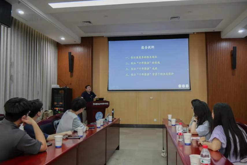 在学术报告会上,熊雄老师以“微塑料污染研究”为主题作了精彩报告。他系统介绍了污染物从发现到管控的全过程,特别强调其团队在长江流域、青藏高原的研究发现与国外模型的差异,体现了本土化研究的重要性。熊老师鼓励科研人员要敢于质疑权威,善于从异常数据中发现新问题。高欣老师则重点讲解了长江生态保护工作,详细解读了十年禁渔政策的科学依据,用白鲟灭绝和中华鲟濒危等案例说明了生态保护的紧迫性,并介绍了禁渔政策实施以来江豚等物种数量回升的积极成效。