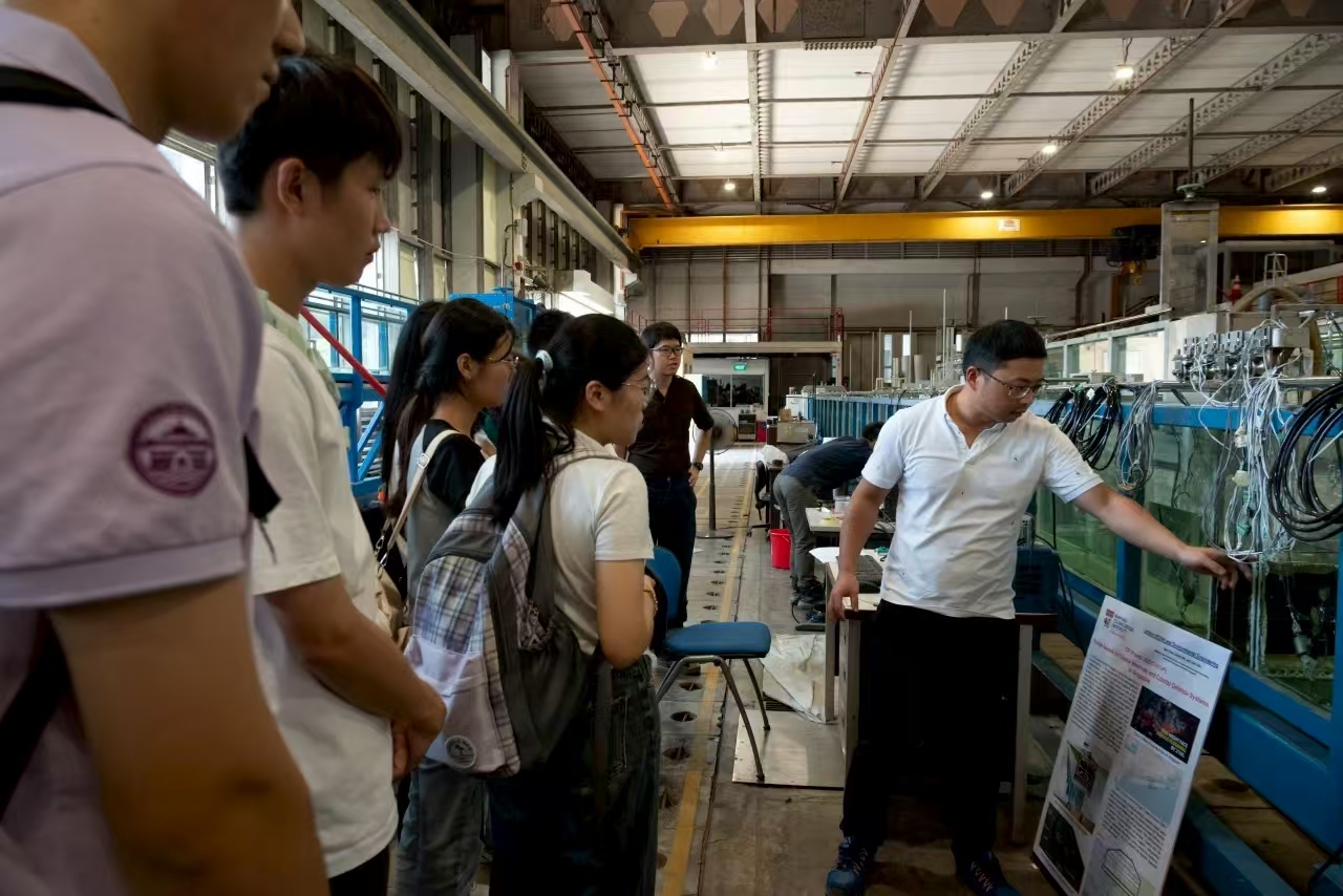 在参观水力学实验室时,队员们近距离观察了大型水槽、智能监测系统等先进设备,直观感受到南洋理工大学“以实践驱动创新”的教育理念。实验室与政府、企业的紧密合作,更凸显了产学研结合的显著成效。队员们徜徉于NTU被誉为“花园校园”的绿色空间中,深切体会到设计与自然的和谐共生。