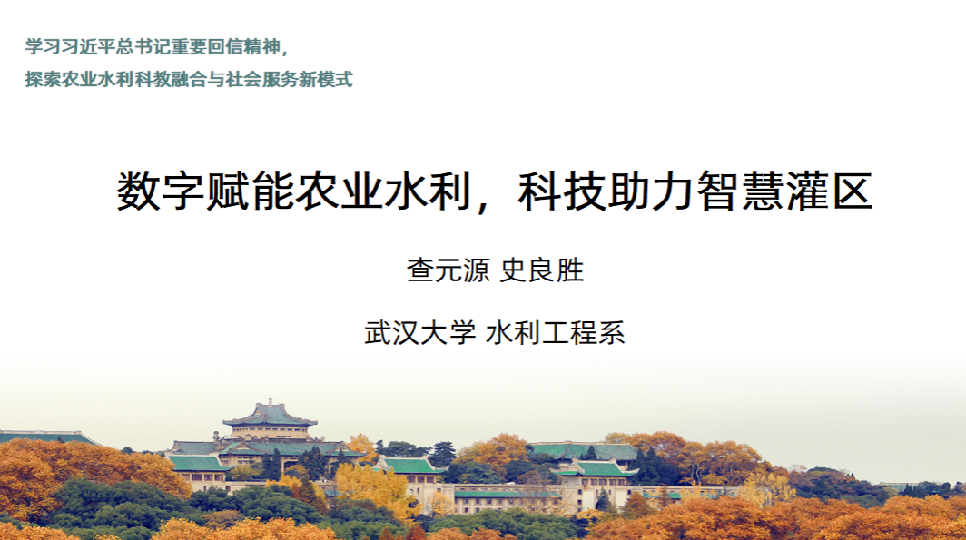 、西北农林科技大学的青年教师们结合自身科研教学实际作重点发言。其中,我院水利工程系党支部书记查元源副教授作“数字赋能农业水利、科技助力智慧灌区”发言,分享了智慧水利与农业人工智能团队“自找苦吃”的研究经历,包括在田间测产中向农民学习估产原理,利用深度学习技术实现手机和无人机估产,在挖土、填土柱的过程中思考土壤水模拟机理与数据驱动结合的理念,并向参会者分享了团队的科研进展、成果转化、科教融合、科普宣传等。