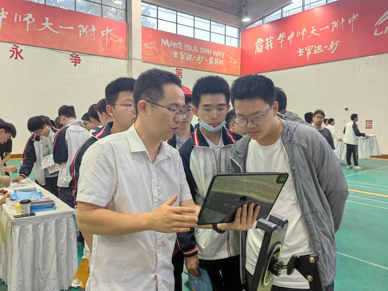 求知在武大,成才在珞珈。在老师及成员的积极演示、耐心讲解下,为期三天的科技节上,学院和水国重实验室展位吸引了华师大一附中众多同学和老师的驻足观看、体验。实验室成员积极宣传51视频
