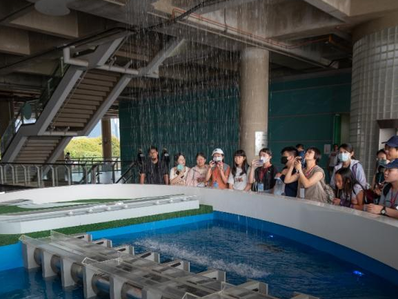 站在滨海堤坝上,实践队员们看到的不仅是一座水利工程,更是一座城市的生存智慧。这座堤坝,既是蓄洪库容达1000万立方米的防洪屏障,又是市民休闲的滨海公园。展览馆里队员们了解到,“多元水源”策略以雨水收集、新生水与淡化水生产、废水回收再利用为核心;“源头-路径-受体”防洪理念,通过多维度施策增强排水系统灵活性;深层隧道污水处理系统(DTSS)高效解决土地资源紧张下的污水集中处理问题。这些实践充分印证,通过系统规划、技术创新与人文关怀,可持续发展能推动水利工程与城市生态、民生需求协同共生。