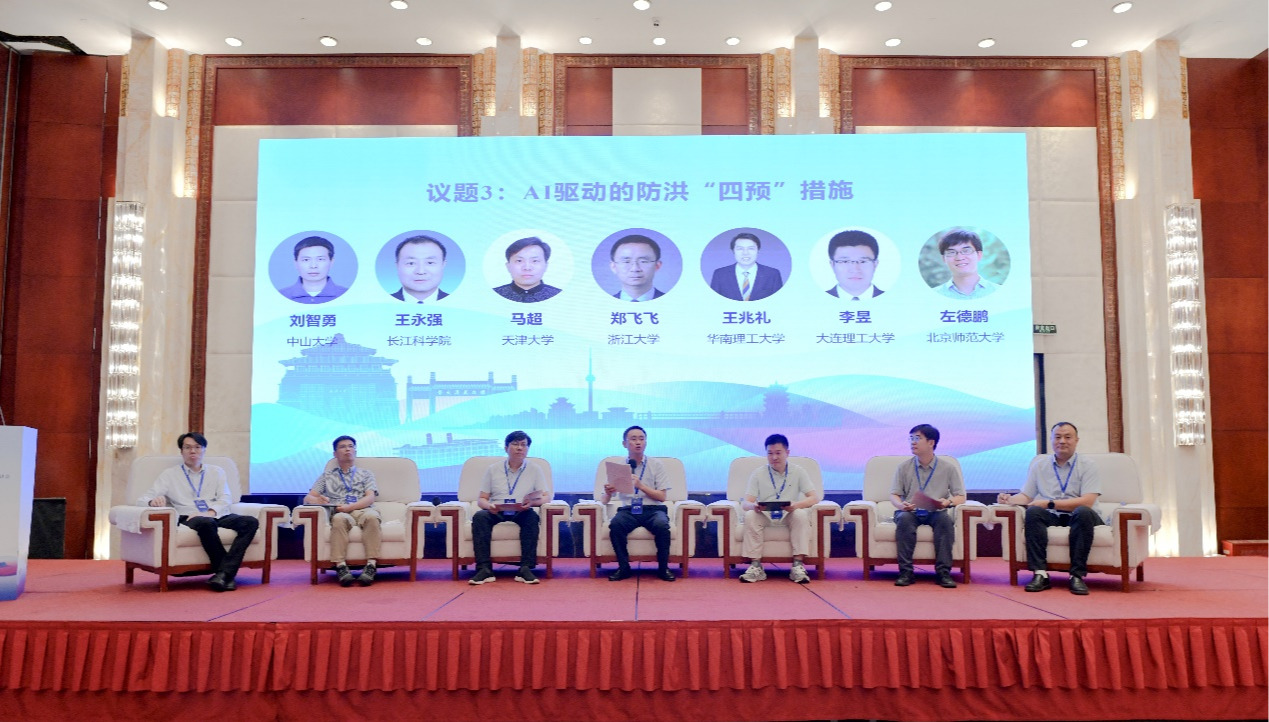 议题三由浙江大学郑飞飞教授主持,天津大学马超教授、华南理工大学王兆礼教授、长江科学院王永强研究员、北京师范大学左德鹏教授、大连理工大学李昱教授、中山大学刘智勇教授六位嘉宾组成圆桌会议,重点研讨了人工智能驱动下的防洪“预报、预警、预演、预案”措施,结合典型洪水案例与实践应用,探讨了AI在提升洪水预见性、响应速度和防御水平方面的潜力。讨论指出,传统防洪预报存在“高精度、高效率、强解释性”难以兼顾的困境,AI可通过与物理模型耦合实现均衡;在城市层面,数字孪生与可解释AI为精细化模拟和“四预”平台建设提供了新思路;在流域层面,如何解决水文大数据不足、复杂水库群调度与人类决策偏好的结合,是亟需突破的难点。专家们一致认为,未来应推动AI与物理机理、管理经济等多学科深度融合,强化对骤洪等极端事件的“超前防御”,以构建智能化、韧性化的流域与城市防洪体系。