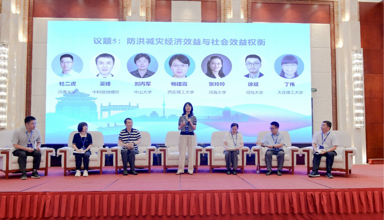 议题五由西安理工大学畅建霞教授主持,河海大学张玲玲教授、徐斌教授、杜二虎教授、中山大学刘丙军教授、中国科学院地理资源所吴锋研究员、大连理工大学丁伟副教授六位嘉宾参与讨论,重点研讨了防洪减灾中经济效益与社会效益的平衡问题。与会专家指出,防洪决策往往存在不确定性与信息不对称,需通过建立实时化信息平台和数据库来提升科学性与社会接受度。讨论强调,防洪工程和管理措施不仅要兼顾经济损益,更需注重公平性与社会效益,特别是在蓄滞洪区启用、动态水位调度以及城乡差异化防洪中体现社会公正。针对现有效益-费用评估方法的不足,专家提出建立统一账本、多维指标和人工智能辅助调度的新思路。大家一致认为,未来应通过更新量化方法、强化信息共享、提高公众防灾意识和参与度,推动多主体利益平衡,实现防洪减灾决策的公平、高效与可持续。
