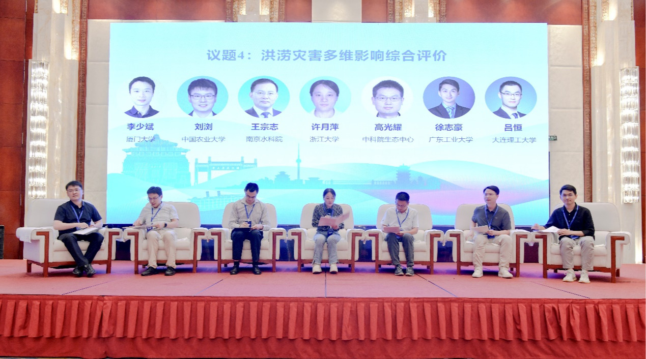 议题四由浙江大学许月萍教授主持,中国科学院生态环境研究中心高光耀研究员、中国农业大学刘浏教授、广东工业大学徐志豪教授、厦门大学李少斌副教授、大连理工大学吕恒副教授、宁波大学周旭东研究员六位嘉宾参与圆桌讨论,重点研讨了洪涝灾害次生影响的识别与综合评价。专家从流域水沙关系、大坝建设的非线性效应、城市地下空间灾害链、农业次生灾害、碳循环作用、海岸带生态风险以及遥感与保险数据应用等方面展开交流。讨论指出,洪涝灾害不仅直接造成损失,还通过灾害链在社会、环境和生态层面引发复杂次生影响;灾后快速损失评估面临数据不足和方法主观性等挑战。专家们普遍认为,应从灾害链视角出发,结合空天地多尺度监测与大模型信息提取方法,强化跨学科与跨尺度研究,才能实现科学系统的洪涝灾害多维综合评价。