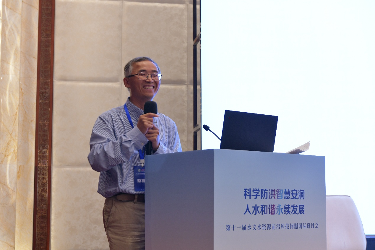在圆桌议题讨论结束后,伊利诺伊大学厄巴纳-香槟分校蔡喜明教授以一系列发人深省的问题,引导大家重新审视人类与洪水的关系。他从百年一遇暴雨的损失对比谈起,追问山洪、骤洪等概念的界定,延伸到“为什么中雨也能引发城市内涝”、“为什么工程有时会带来新的风险”等现实困境。他强调防洪治理不仅是工程问题,更关乎道、儒、法等不同治理理念的平衡,以及科学预测、责任分担与社会习惯的深层挑战。同时,他也指出科研与实践脱节、知识更新滞后等矛盾,呼吁水利工程师应继续肩负起推动人类文明与防洪减灾进步的责任与使命。