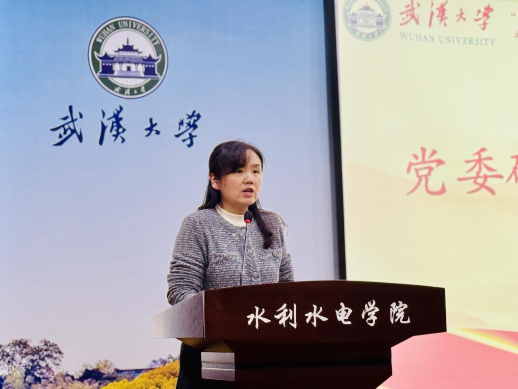 左志香对大赛进行点评总结。她高度肯定了各参赛支部的出色表现,围绕党支部未来工作提出三点期望:一要结合专业特色,深入学习贯彻习近平新时代中国特色社会主义思想;二要推动党建与科研深度融合,使党支部力量在服务国家战略需求中充分彰显;三要主动将个人科研方向与国家发展大局、社会民生需求紧密对接,以实绩诠释新时代工科党员的使命担当。最后,她希望各研究生党支部以本次比赛为新起点,持续提升组织力、凝聚力和战斗力,为学校党建高质量发展贡献武大工科人的智慧与力量。