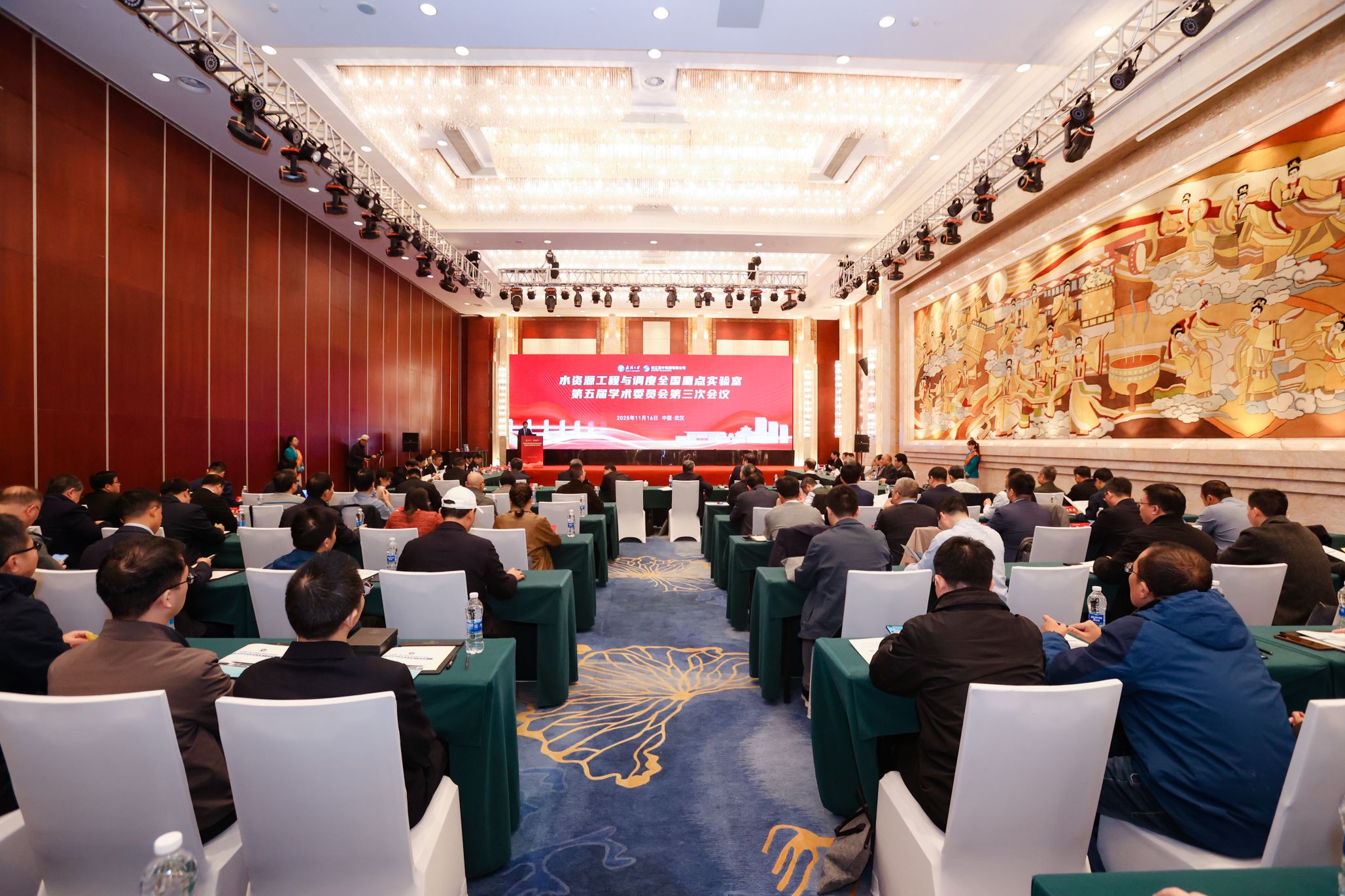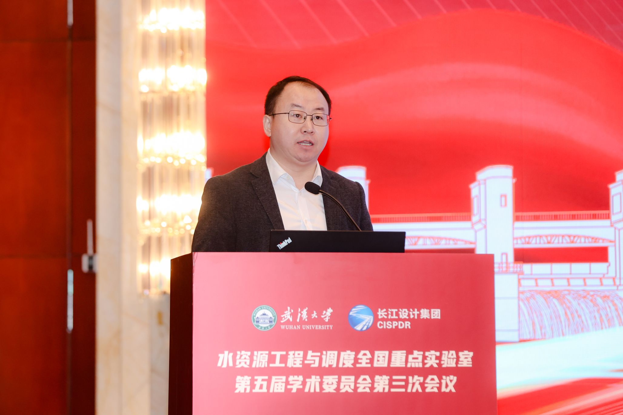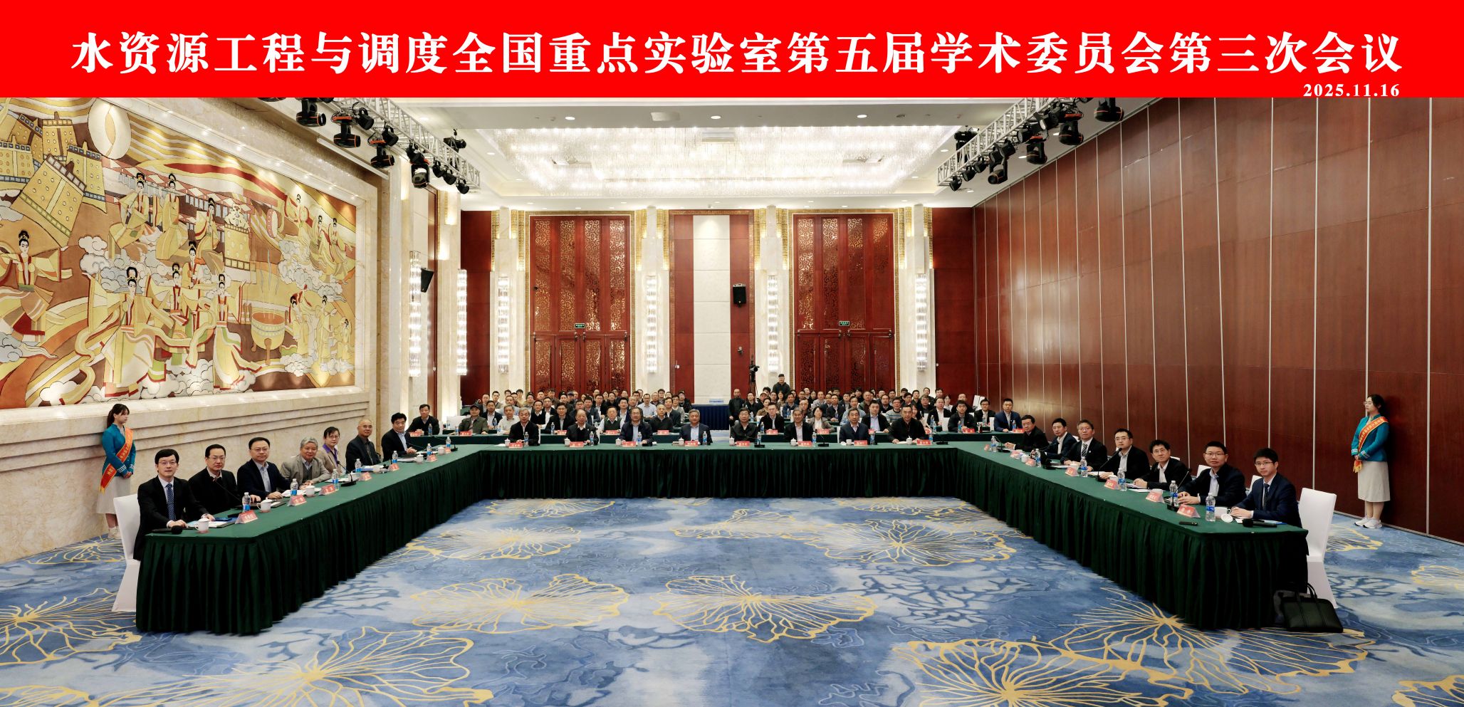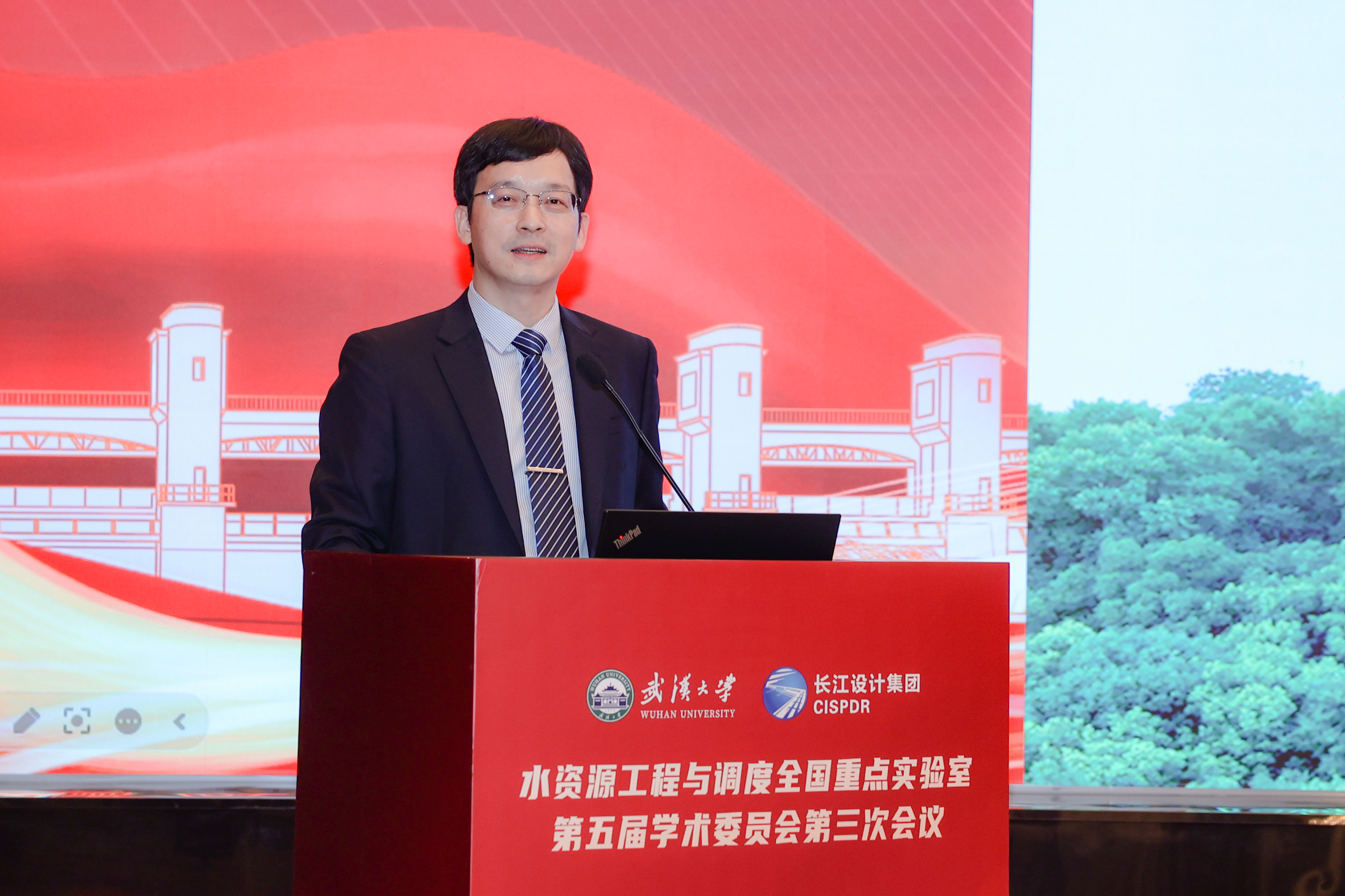 副校长何莲、长江设计集团总经理王汉辉出席并致辞;学术委员会主任委员钮新强院士主持会议,副主任委员胡春宏院士,委员王超院士、康绍忠院士、夏军院士、倪晋仁院士、冯夏庭院士、张宗亮院士、周创兵院士、郭生练教授、杨启贵教授级高工、方红卫教授等出席会议。