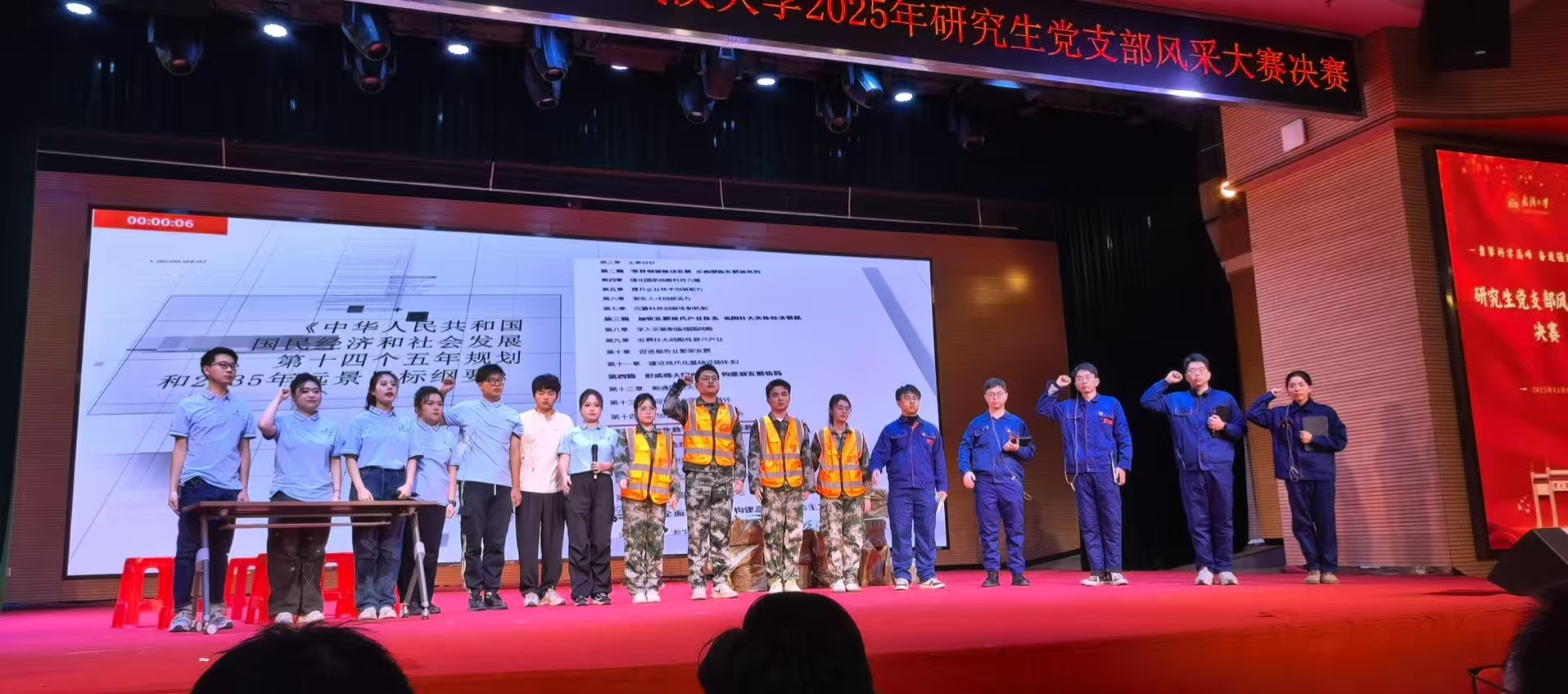 在前期的工学部复赛中,水文与水资源系研究生第一党支部凭借优异的表现获复赛一等奖,水力发电工程系研究生第七党支部、水工程科学研究院研究生第一党支部在舞台上呈现的《灯火下的筑坝人》荣获工学部复赛二等奖和学校优胜奖。《灯火下的筑坝人》生动展现从1950年代水利人靠算盘、手绘图纸艰苦建坝到新时代青年运用数字孪生、AI建模与智能终端构筑“智慧大坝”的科技跨越。