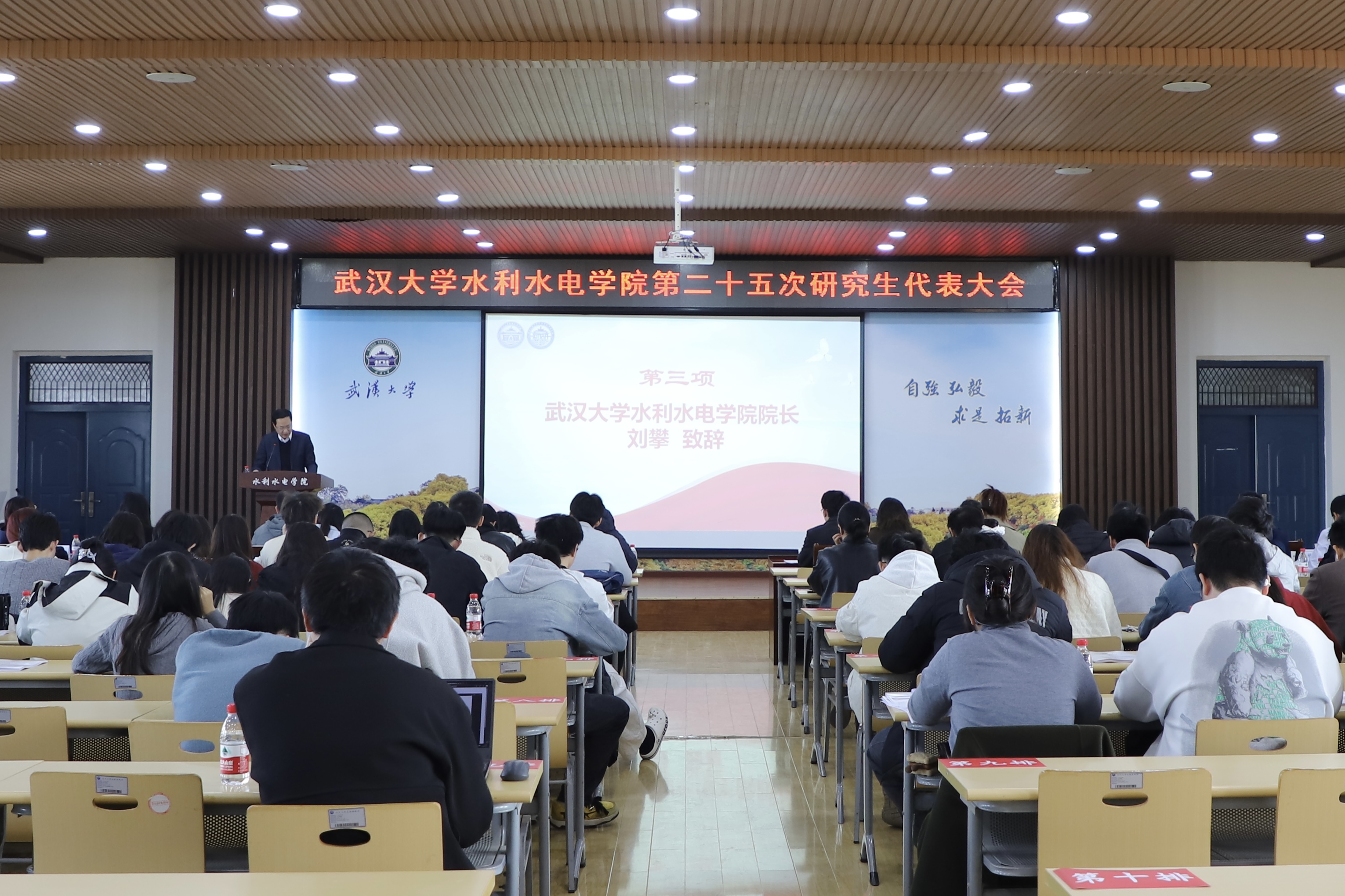 大会在庄严的国歌声中拉开帷幕。校团委副书记迟宗宝在致辞中肯定了院研究生会在思想引领、学术创新、实践服务、就业帮扶等方面取得的成效,并对新一届研会提出三点希望:一是强化思想引领,学习贯彻党的二十届四中全会精神,引导学生将个人理想融入国家发展;二是聚焦主责主业,在学术、权益、就业等方面提供精准服务,打造水利特色品牌活动;三是勇于改革创新,增强组织活力,引导学生服务国家战略和区域发展。