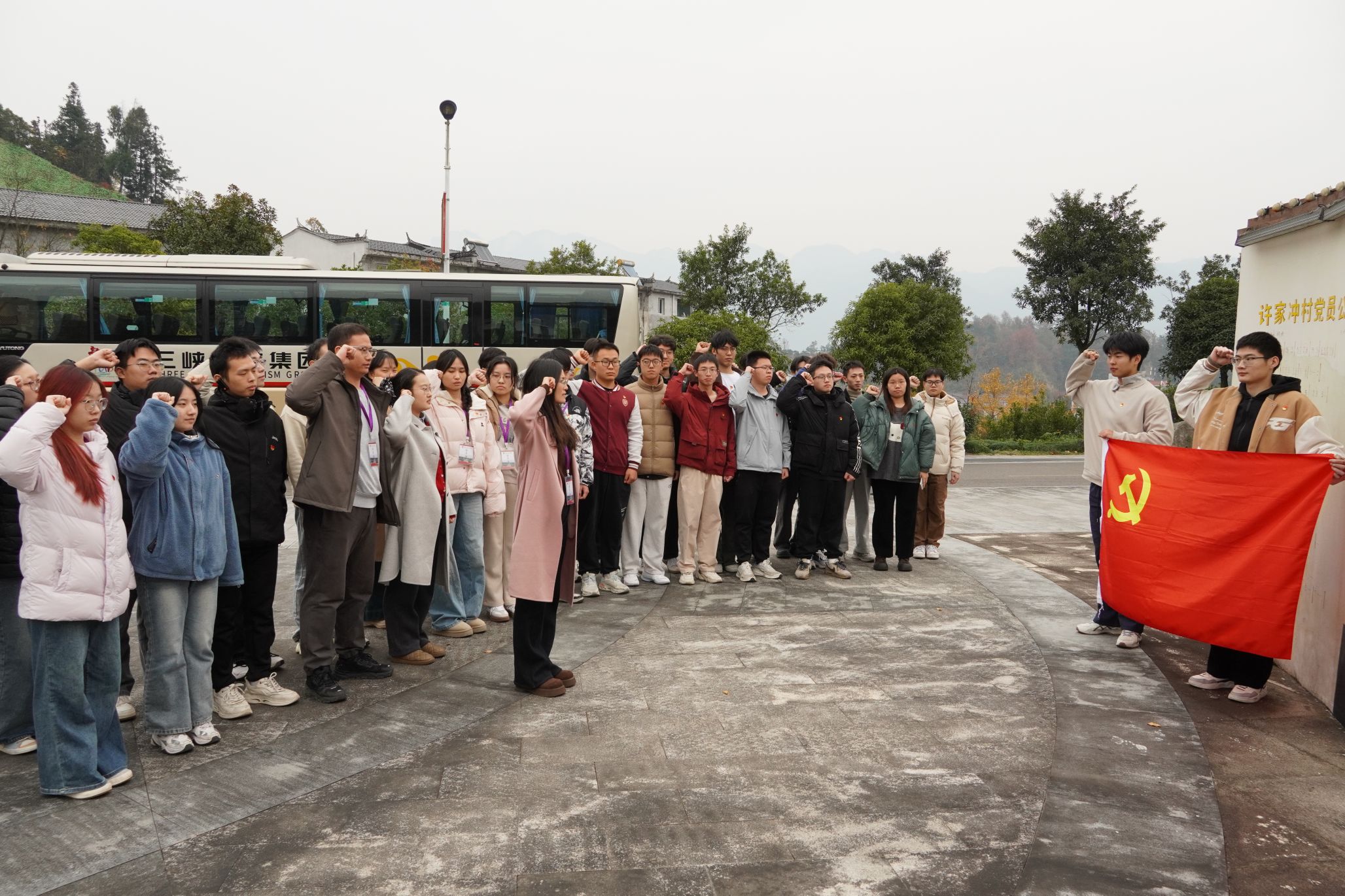 随后,党员骨干们沿着习近平总书记的足迹前往许家冲村,在许家冲村文化大礼堂聆听基层党组织推动乡村振兴的经验介绍,学习许家冲村将群众期盼转化为党员行动的实践做法。左志香带领学生党员们怀着崇敬之心重温入党誓词,让每一位党员在庄重仪式中进一步筑牢信仰之基。