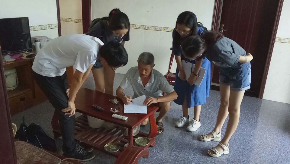 的学生,我们现在在做一个关于“河长制”的调研,请问一下,您听说过我国正在实施的河长制吗?”一句句问候几乎响遍了村落中的家家户户,实践队员们面带微笑礼貌地访问着,乡亲们也会热情的接待这些来自外地的“客人”。