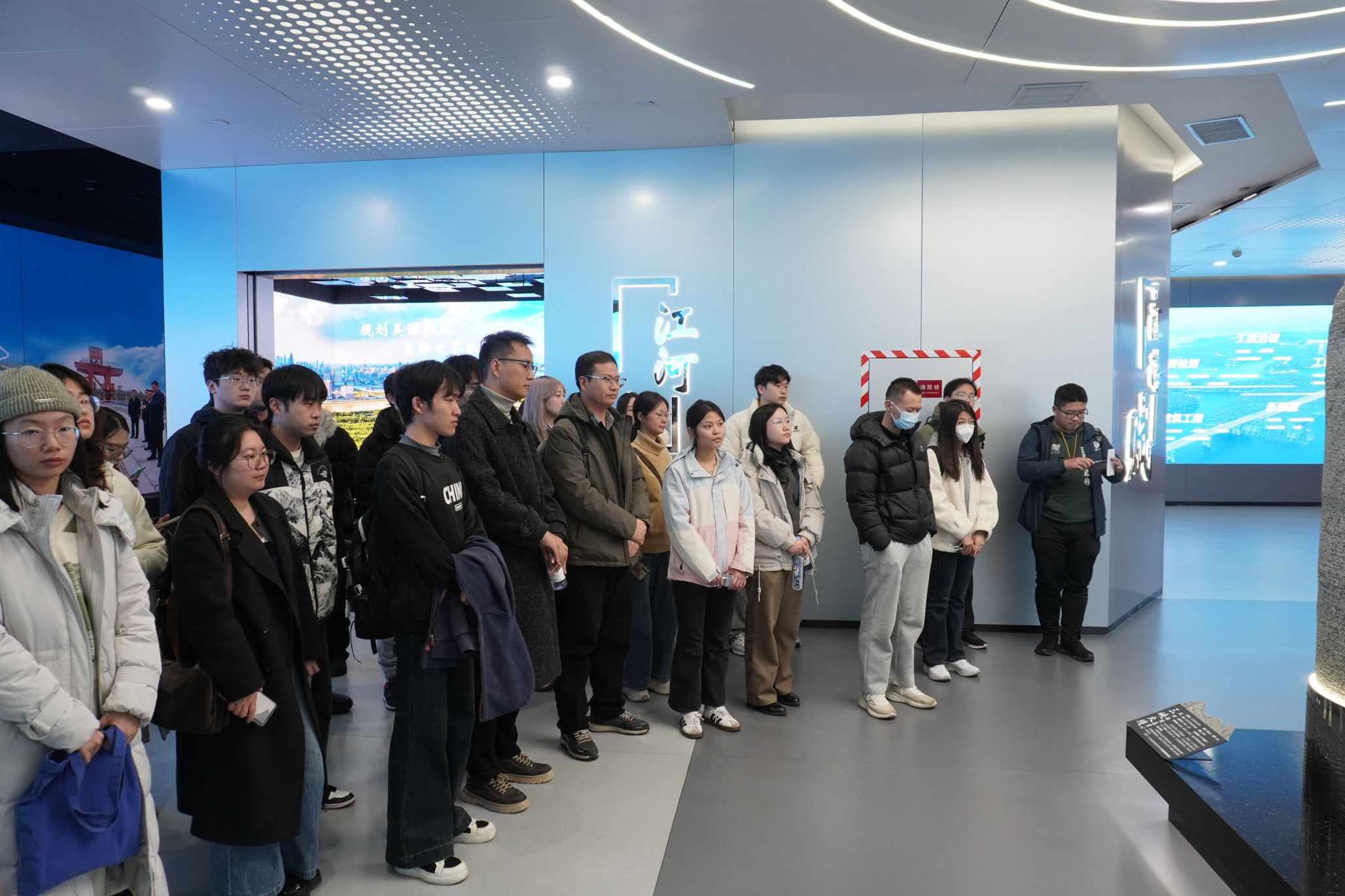 随后,师生参观了集团数字化展厅。通过珍贵史料、工程模型与数字沙盘,同学们深入了解三峡、南水北调等国之重器背后的设计历程与技术突破,切身感悟到一代代长江设计人“奉献、团队、创新、服务、实干”的精神传承。
