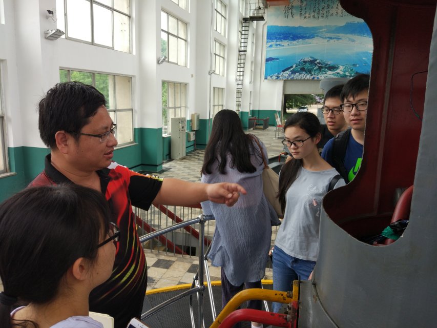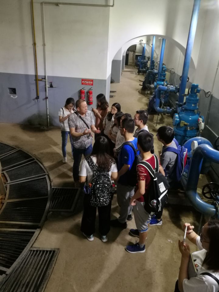 在樊口泵站现场,泵站技术人员向师生详细介绍了流域水系特征和泵站枢纽概况,并分组带领师生深入泵站枢纽建筑物,对泵站关键工程进行详细讲解。结合学生在校所学的理论知识,泵站技术人员对引水建筑物、进水建筑物、主厂房、水泵结构、主电机结构、控制设施、配电设备、辅助设备等逐一现场讲解。学生兴趣浓厚,积极提问,收到了良好的教学效果。