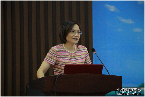 首先,程连珍书记讲话。她对家长培养孩子考入学院表示祝贺,从学校的基本情况、学院的办学特色两个部分为家长们做了详细介绍,并建议家长要继续关注学生的成长,与学校学院形成教育的合力,帮助孩子规划好大学四年学习生活,并着重加强思维、能力和素质的训练。