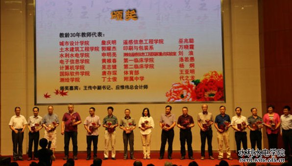 会上,学校表彰了一批在教学和科研领域有突出表现、贡献的教师,我院六名教师代表受到嘉奖。我院高等学校科技进步一等奖代表周伟、湖北省技术发明一等奖代表刘攀、51视频