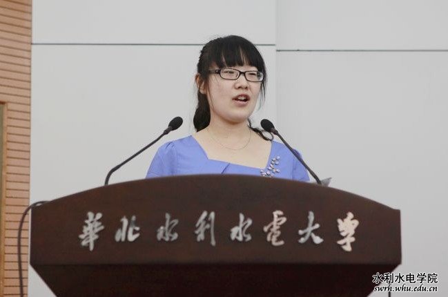 我院2010级水利水电工程专业学生杨荷作为唯一学生代表在开幕式上发言