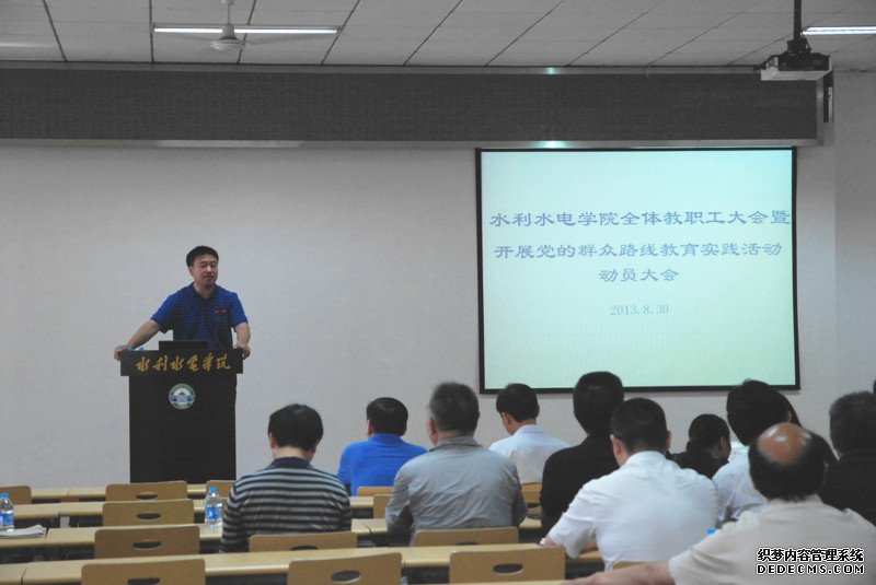 院党委书记屈文谦作教育实践活动动员报告,对学院党委深入开展党的群众路线教育实践活动进行动员部署。他指出,围绕保持党的先进性和纯洁性,在全党深入开展以为民务实清廉为主要内容的党的群众路线教育实践活动是党的十八大作出的一项重大部署,要充分认识活动的重大意义,把思想和行动统一到中央决策部署上来。开展教育实践活动是坚持社会主义办学方向、办人民满意师生满意学院的需要,是进一步改进工作作风、解决突出问题的需要,是进一步推动科学发展、建设中国特色世界一流大学的需要;他强调开展教育实践活动要抓住五个关键:紧紧围绕为民务实清廉这个主要内容;始终聚焦反对形式主义、官僚主义、享乐主义和奢靡之风;认真贯彻“照镜子、正衣冠、洗洗澡、治治病”这个总要求;科学运用整风精神这个根本方法;努力推动学院科学发展。屈文谦强调要紧紧抓住学习教育、听取意见,查摆问题、开展批评,整改落实、建章立制三个重要环节,确保教育实践活动扎实推进、不走过场。最后,他指出我们要认真贯彻落实,切实周密安排和做好教育实践活动,为学院科学发展保驾护航。