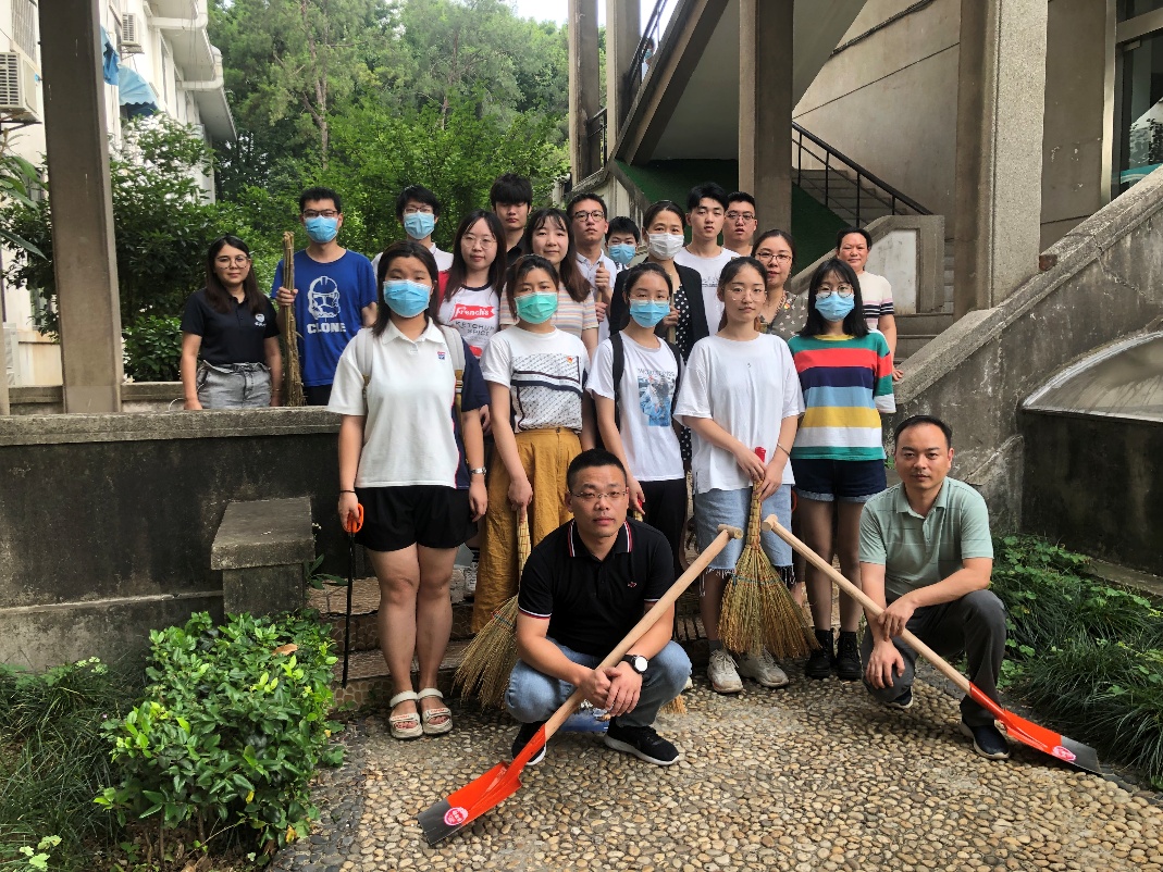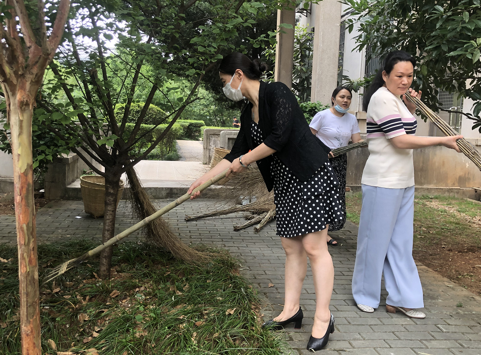 机关党支部全体成员与学生志愿者一道,按照学校统一安排,对分配的卫生包干区进行了大扫除。