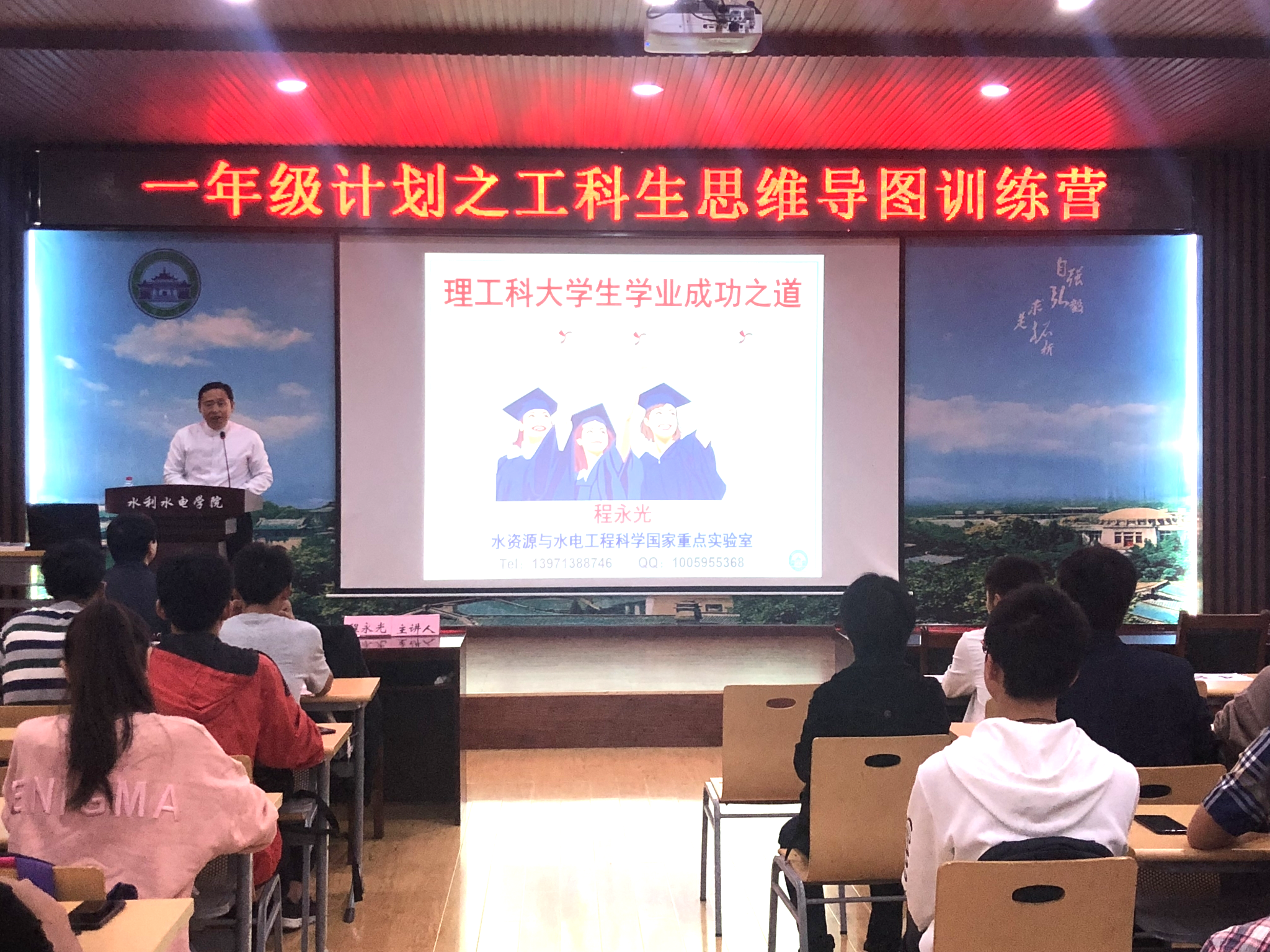 水资源与水电工程科学国家重点实验室高级研究员、博士生导师程永光教授深入浅出、条分缕析为同学们作《理工科大学生学业成功之道》专题报告。院党委副书记张栋梁、院团委书记、2018级辅导员刘嘉梅和来自校内外300余名同学全称参与。